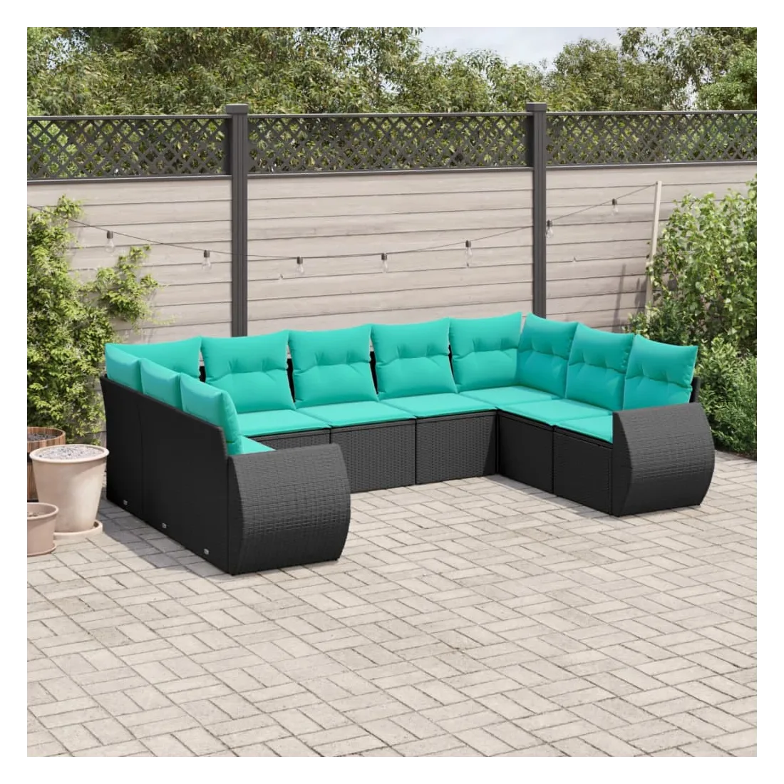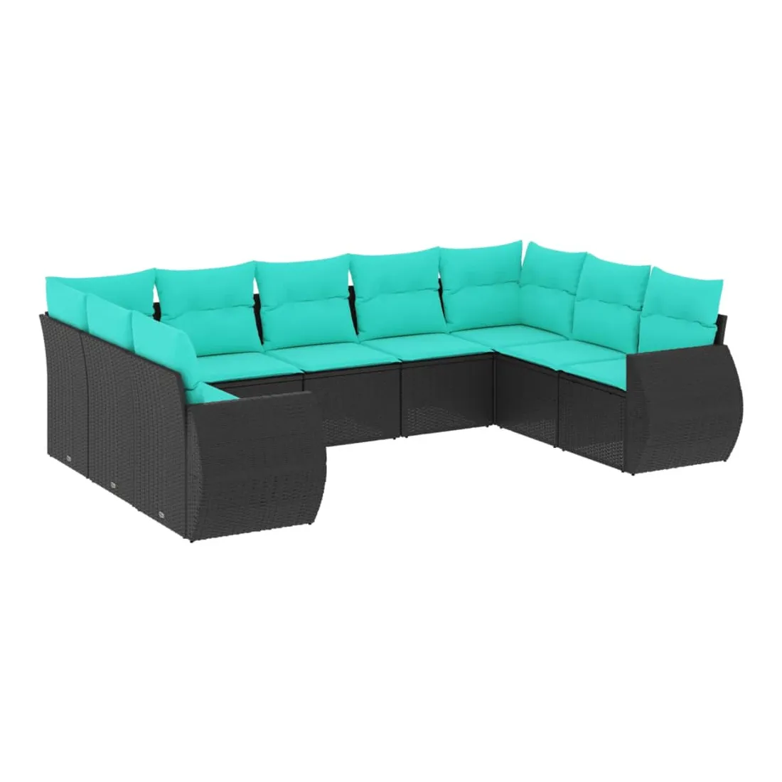 Salon de jardin 9 pcs avec coussins noir résine tressée