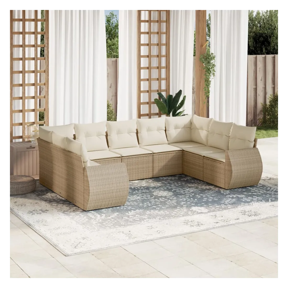 Salon de jardin avec coussins 9 pcs beige résine tressée