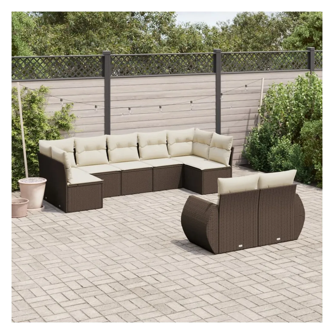 Cet ensemble de canapés de jardin est le complément parfait de votre arrière-cour, terrasse ou patio, offrant un espace confortable et accueillant pour discuter avec la famille et les amis ou simplement se détendre et profiter de l'extérieur. Matériau durable : la résine tressée, également connue sous le nom de poly rotin, est un matériau synthétique solide et nécessitant peu d'entretien qui ressemble au rotin naturel. Il est léger, facile à nettoyer et couramment utilisé pour les meubles d'extérieur en raison de sa durabilité et de ses propriétés de résistance aux intempéries.Expérience d'assise confortable : ce mobilier d'extérieur, doté de coussins épais, offre une expérience d'assise confortable.Housse amovible et lavable : ces coussins de siège sont dotés de housses amovibles pour un lavage et un entretien faciles.Conception modulaire : cet ensemble de meubles d'extérieur a une conception modulaire, ce qui le rend complètement flexible et facile à déplacer, afin que vous puissiez créer un agencement de meubles d'extérieur personnalisé. Bon à savoir :Pour que vos meubles d'extérieur restent beaux, nous vous recommandons de les protéger avec une housse imperméable.