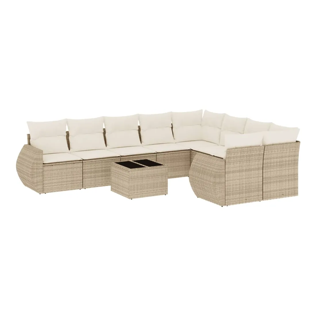 Salon de jardin avec coussins 10 pcs beige résine tressée