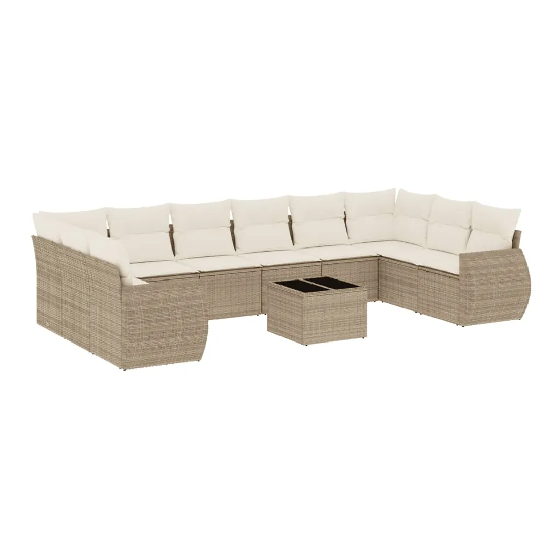 Salon de jardin 11 pcs avec coussins beige résine tressée