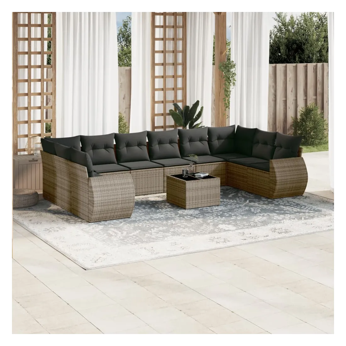 Salon de jardin 11 pcs avec coussins gris résine tressée