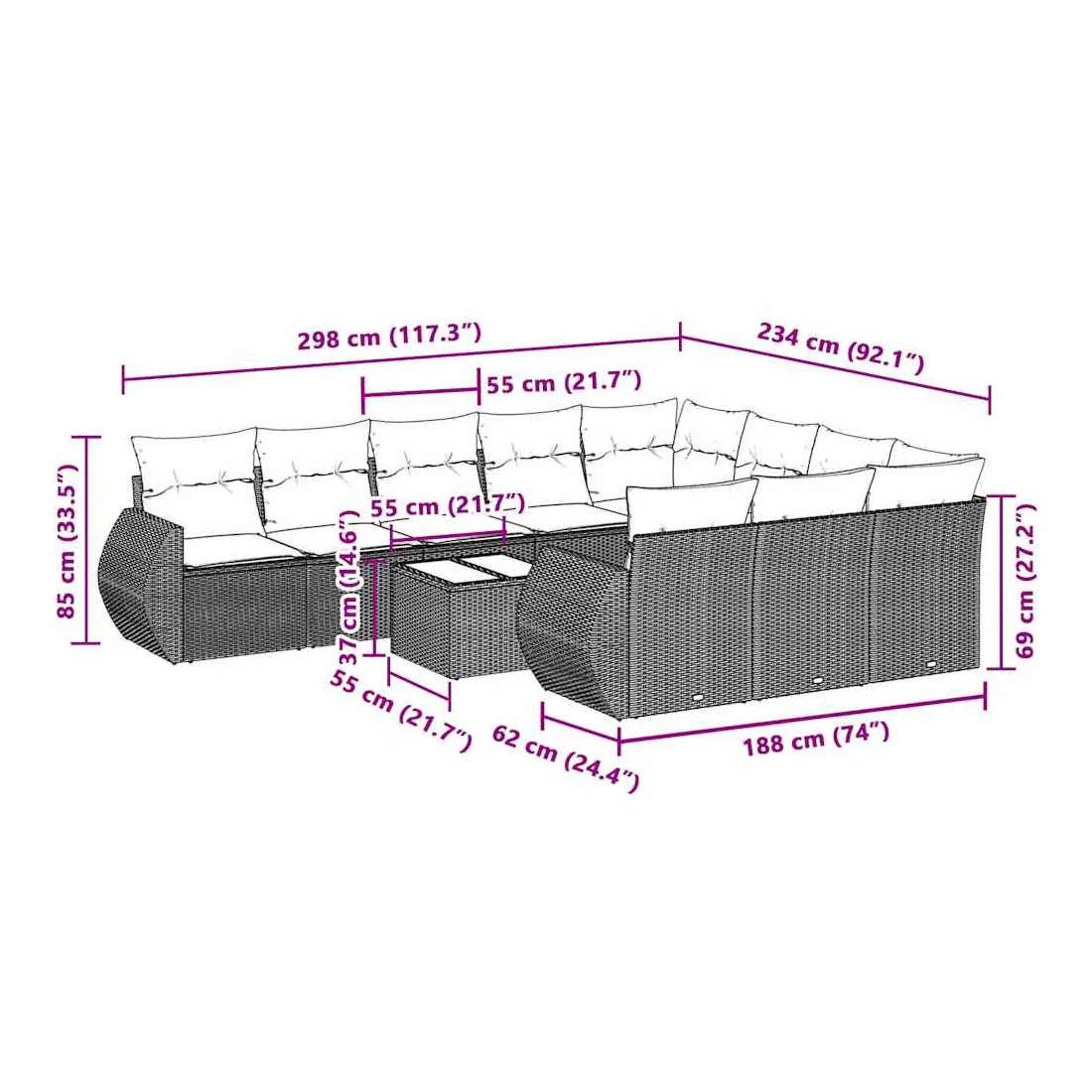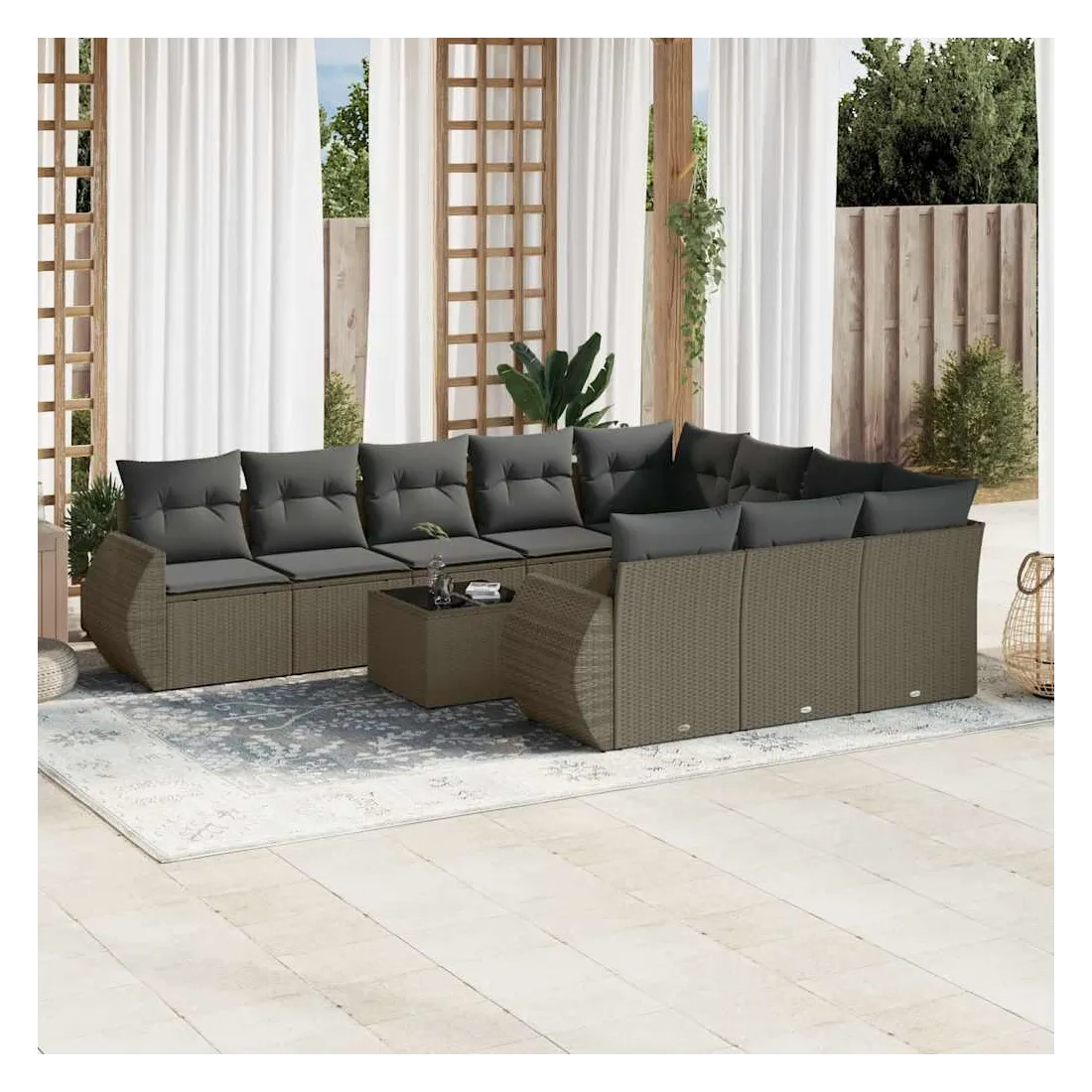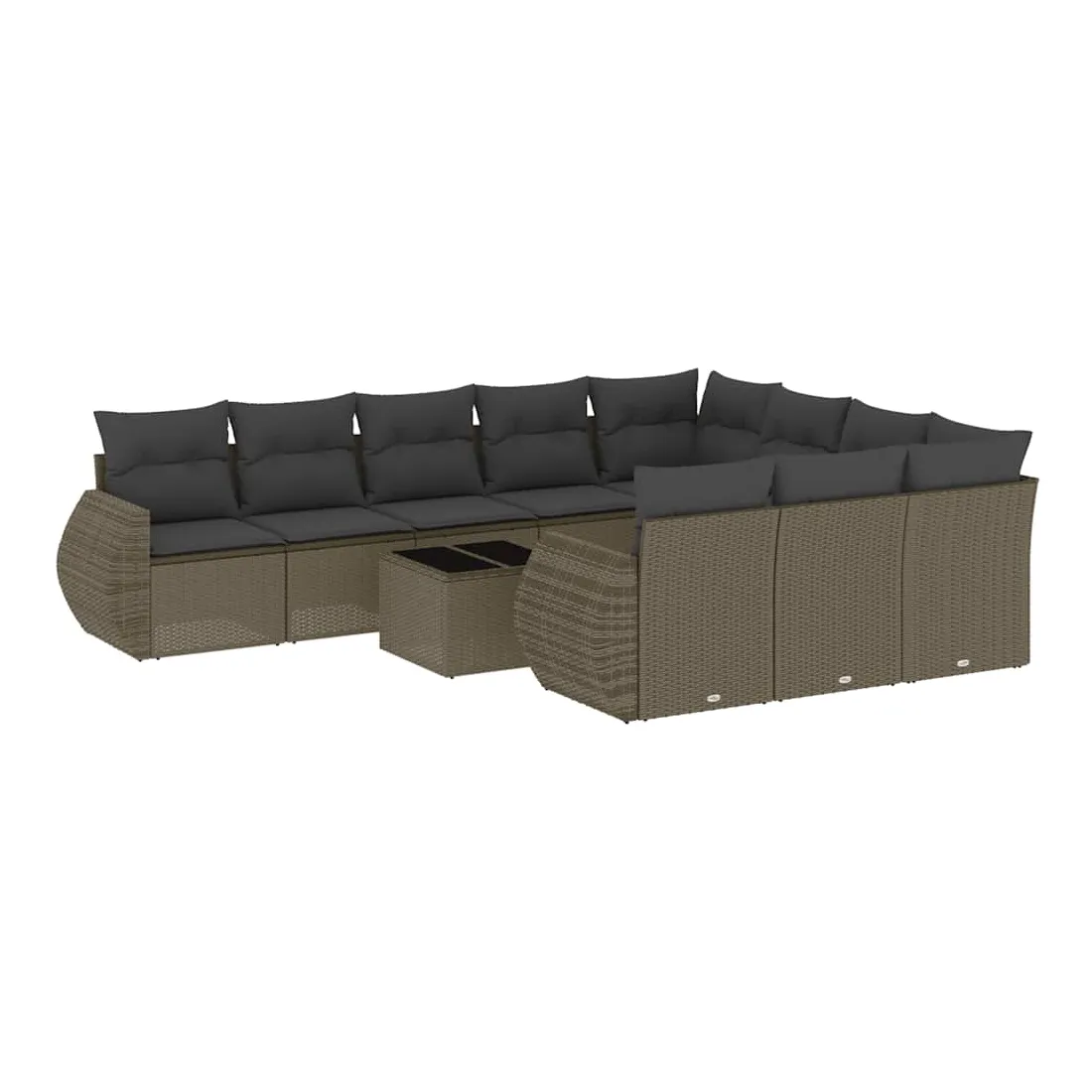Salon de jardin 11 pcs avec coussins gris clair résine tressée