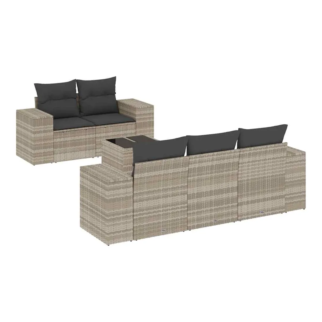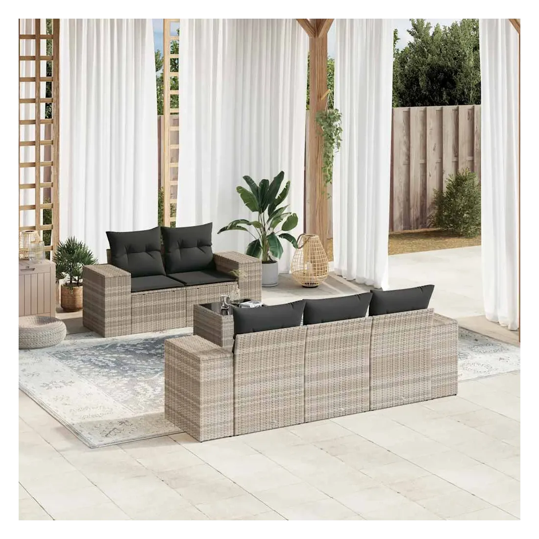 Cet ensemble de canapés de jardin est le complément parfait de votre arrière-cour, terrasse ou patio, offrant un espace confortable et accueillant pour discuter avec la famille et les amis ou simplement se détendre et profiter de l'extérieur. Matériau durable : la résine tressée, également connue sous le nom de poly rotin, est un matériau synthétique solide et nécessitant peu d'entretien qui ressemble au rotin naturel. Il est léger, facile à nettoyer et couramment utilisé pour les meubles d'extérieur en raison de sa durabilité et de ses propriétés de résistance aux intempéries.Dessus en verre : le dessus de la table d'extérieur est fabriqué en verre trempé solide et durable, ce qui le rend facile à nettoyer avec un chiffon humide et ajoute une touche d'élégance à votre espace extérieur.Expérience d'assise confortable : ce mobilier d'extérieur, doté de coussins épais, offre une expérience d'assise confortable.Housse amovible et lavable : ces coussins de siège sont dotés de housses amovibles pour un lavage et un entretien faciles.Conception modulaire : cet ensemble de meubles d'extérieur a une conception modulaire, ce qui le rend complètement flexible et facile à déplacer, afin que vous puissiez créer un agencement de meubles d'extérieur personnalisé. Bon à savoir :Pour que vos meubles d'extérieur restent beaux, nous vous recommandons de les protéger avec une housse imperméable.