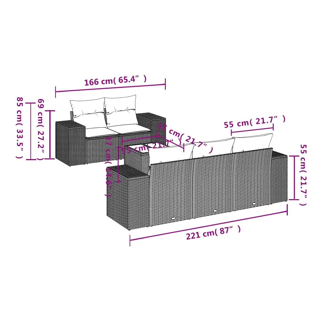 - Dimensions du coussin de dossier : 55 x 45 x 13 cm (L x l x é)