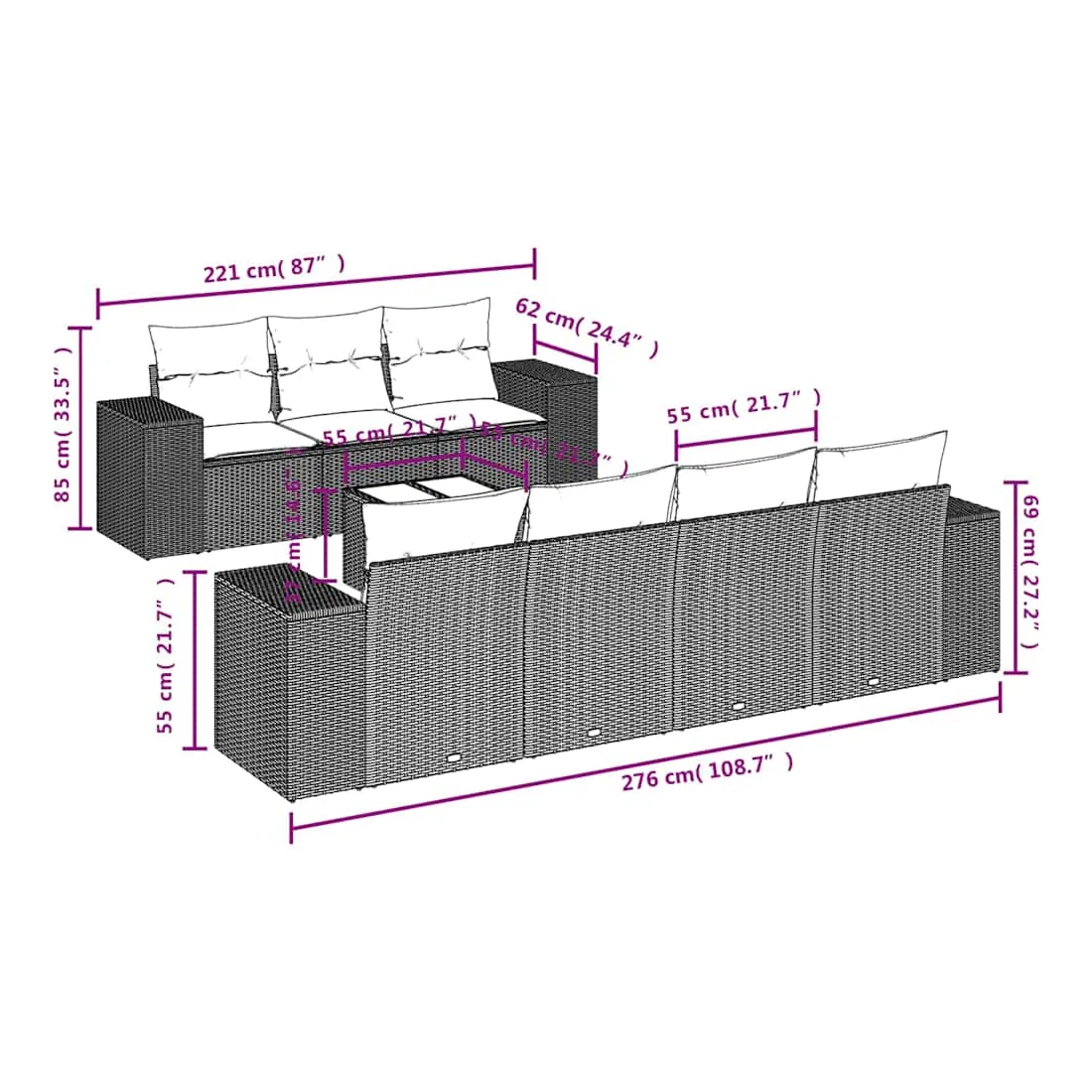 - Dimensions du coussin de dossier : 55 x 45 x 13 cm (L x l x é)