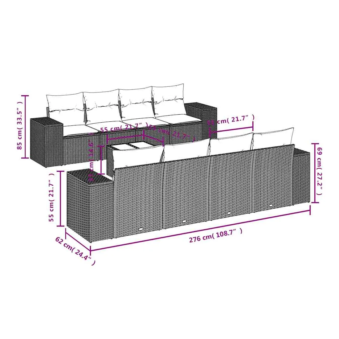 - 8 x coussin d'assise avec housse amovible et lavable