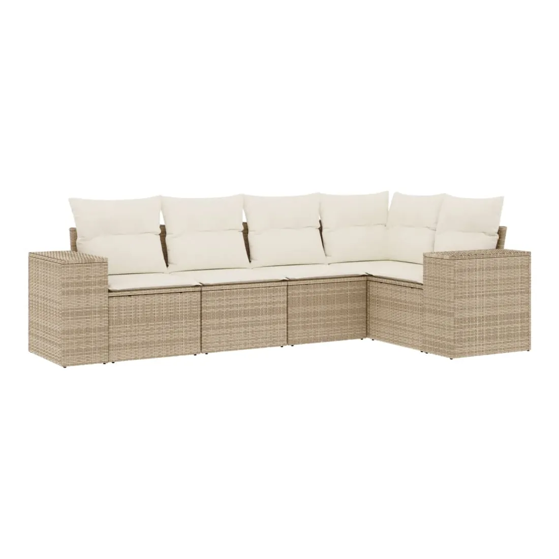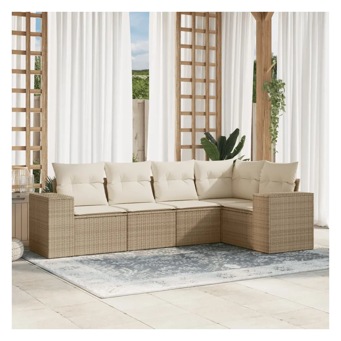 Salon de jardin avec coussins 5 pcs beige résine tressée