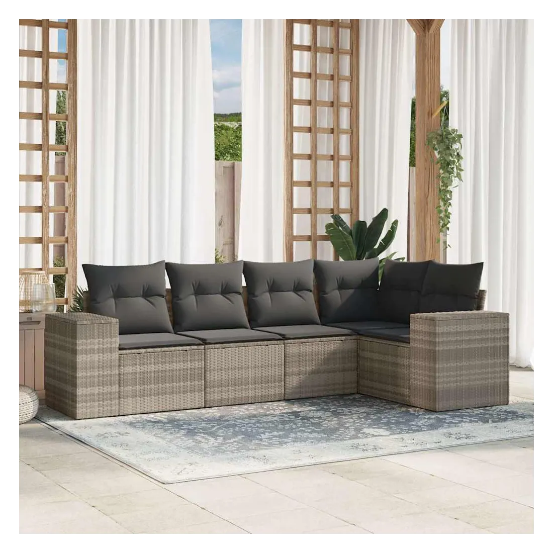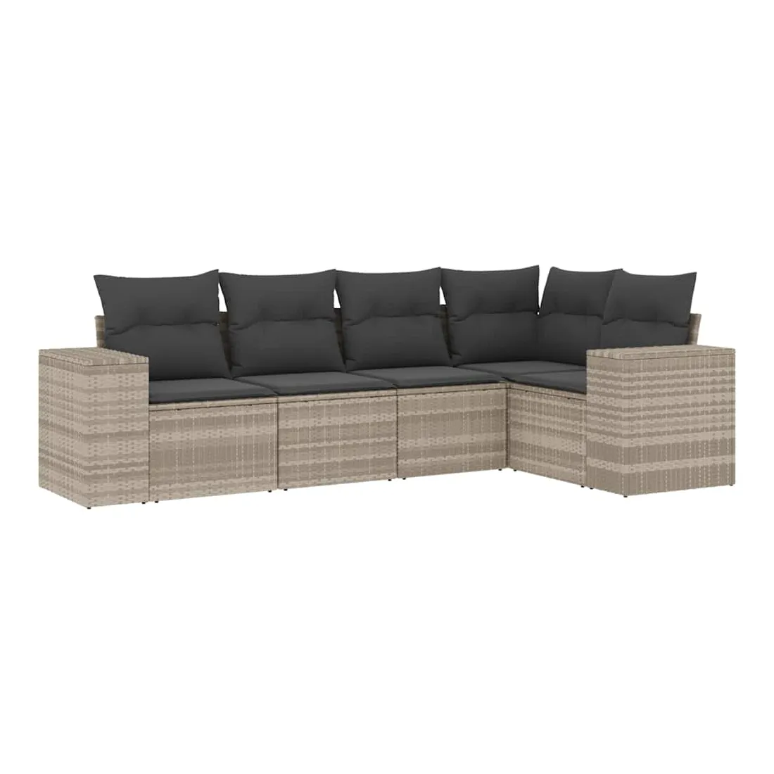 Salon de jardin 5 pcs avec coussins gris clair résine tressée