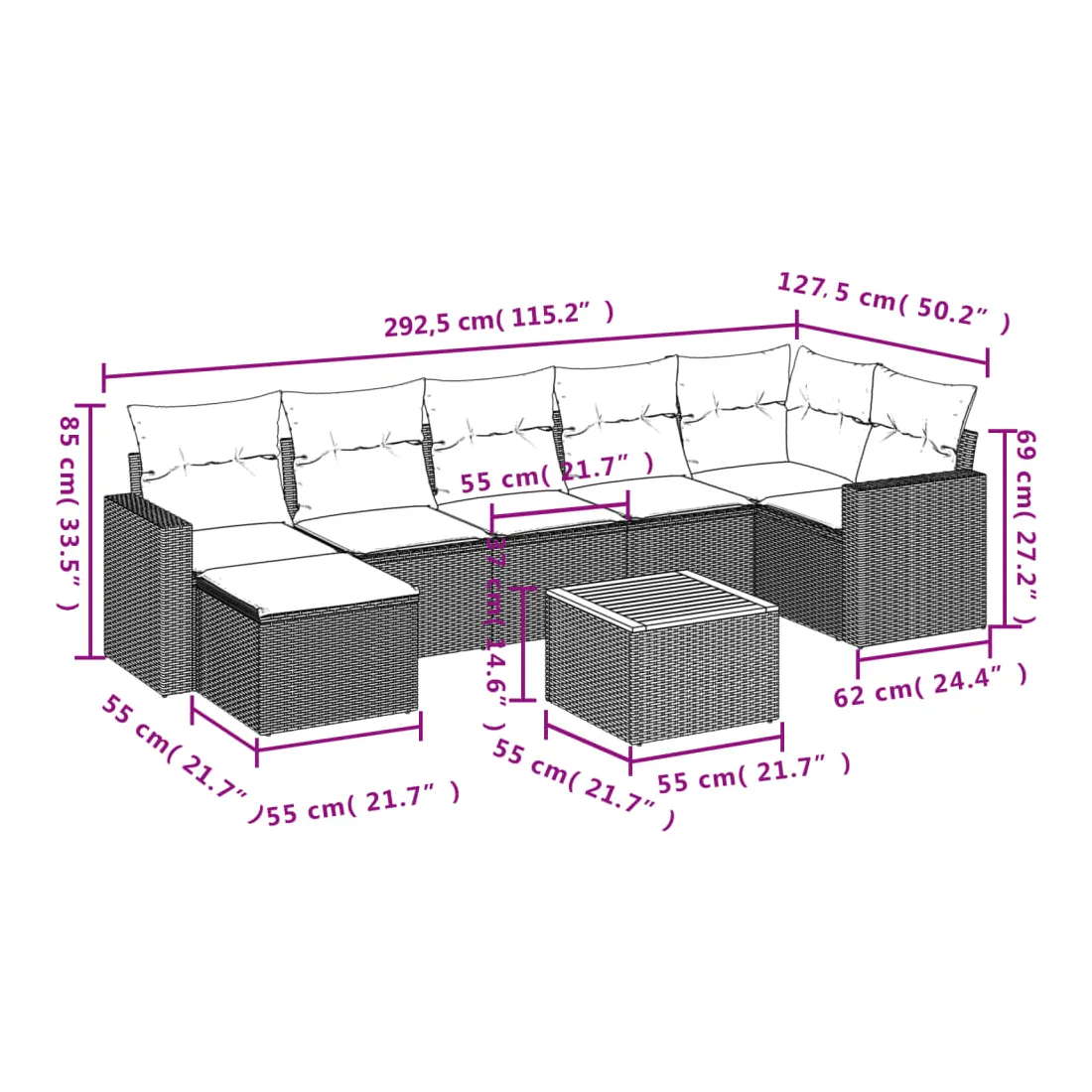 • 7 x coussin de siège avec housse amovible et lavable