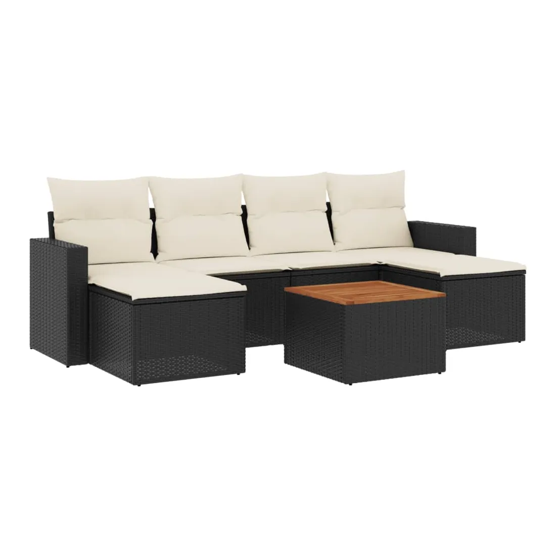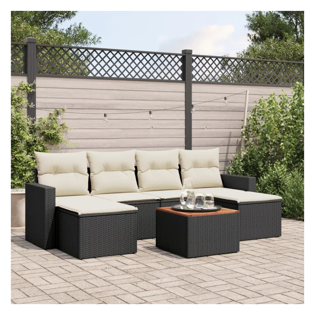 Cet ensemble de canapés de jardin est le complément parfait de votre arrière-cour, terrasse ou patio, offrant un espace confortable et accueillant pour discuter avec la famille et les amis ou simplement se détendre et profiter de l'extérieur. Matériau durable : la résine tressée, également connue sous le nom de poly rotin, est un matériau synthétique solide et nécessitant peu d'entretien qui ressemble au rotin naturel. Il est léger, facile à nettoyer et couramment utilisé pour les meubles d'extérieur en raison de sa durabilité et de ses propriétés de résistance aux intempéries.Dessus stable et facile à nettoyer : cette table de jardin a un dessus en bois d'acacia robuste, durable et facile à nettoyer avec un chiffon humide.Expérience d'assise confortable : ce mobilier d'extérieur, doté de coussins épais, offre une expérience d'assise confortable.Housse amovible et lavable : ces coussins de siège sont dotés de housses amovibles pour un lavage et un entretien faciles.Conception modulaire : cet ensemble de meubles d'extérieur a une conception modulaire, ce qui le rend complètement flexible et facile à déplacer, afin que vous puissiez créer un agencement de meubles d'extérieur personnalisé. Bon à savoir :Pour que vos meubles d'extérieur restent beaux, nous vous recommandons de les protéger avec une housse imperméable.