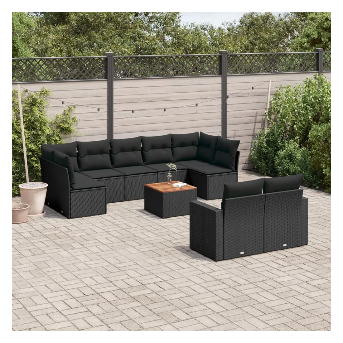 Cet ensemble de canapés de jardin est le complément parfait de votre arrière-cour, terrasse ou patio, offrant un espace confortable et accueillant pour discuter avec la famille et les amis ou simplement se détendre et profiter de l'extérieur. Matériau durable : la résine tressée, également connue sous le nom de poly rotin, est un matériau synthétique solide et nécessitant peu d'entretien qui ressemble au rotin naturel. Il est léger, facile à nettoyer et couramment utilisé pour les meubles d'extérieur en raison de sa durabilité et de ses propriétés de résistance aux intempéries.Dessus stable et facile à nettoyer : cette table de jardin a un dessus en bois d'acacia robuste, durable et facile à nettoyer avec un chiffon humide.Expérience d'assise confortable : ce mobilier d'extérieur, doté de coussins épais, offre une expérience d'assise confortable.Housse amovible et lavable : ces coussins de siège sont dotés de housses amovibles pour un lavage et un entretien faciles.Conception modulaire : cet ensemble de meubles d'extérieur a une conception modulaire, ce qui le rend complètement flexible et facile à déplacer, afin que vous puissiez créer un agencement de meubles d'extérieur personnalisé. Bon à savoir :Pour que vos meubles d'extérieur restent beaux, nous vous recommandons de les protéger avec une housse imperméable.