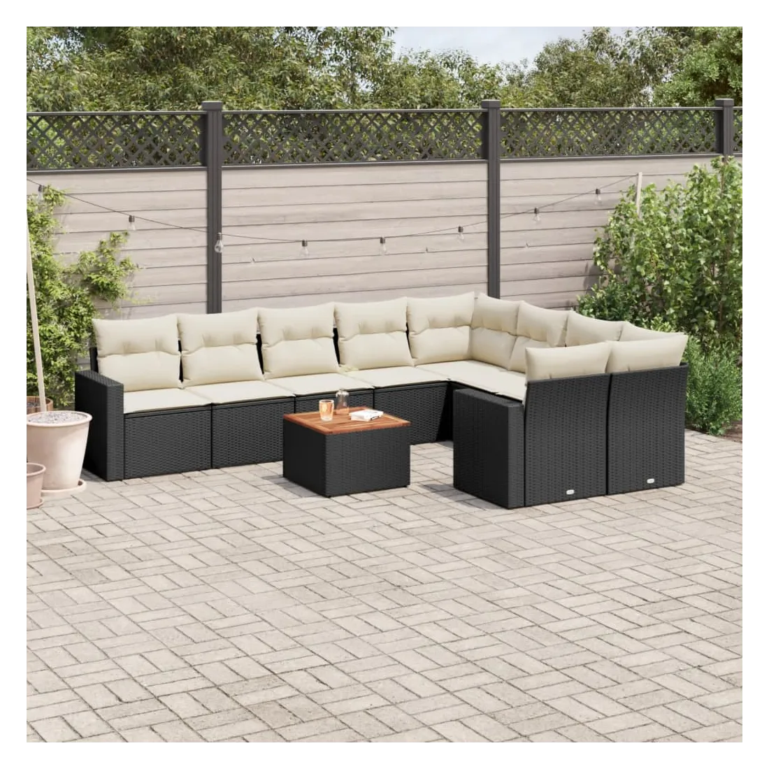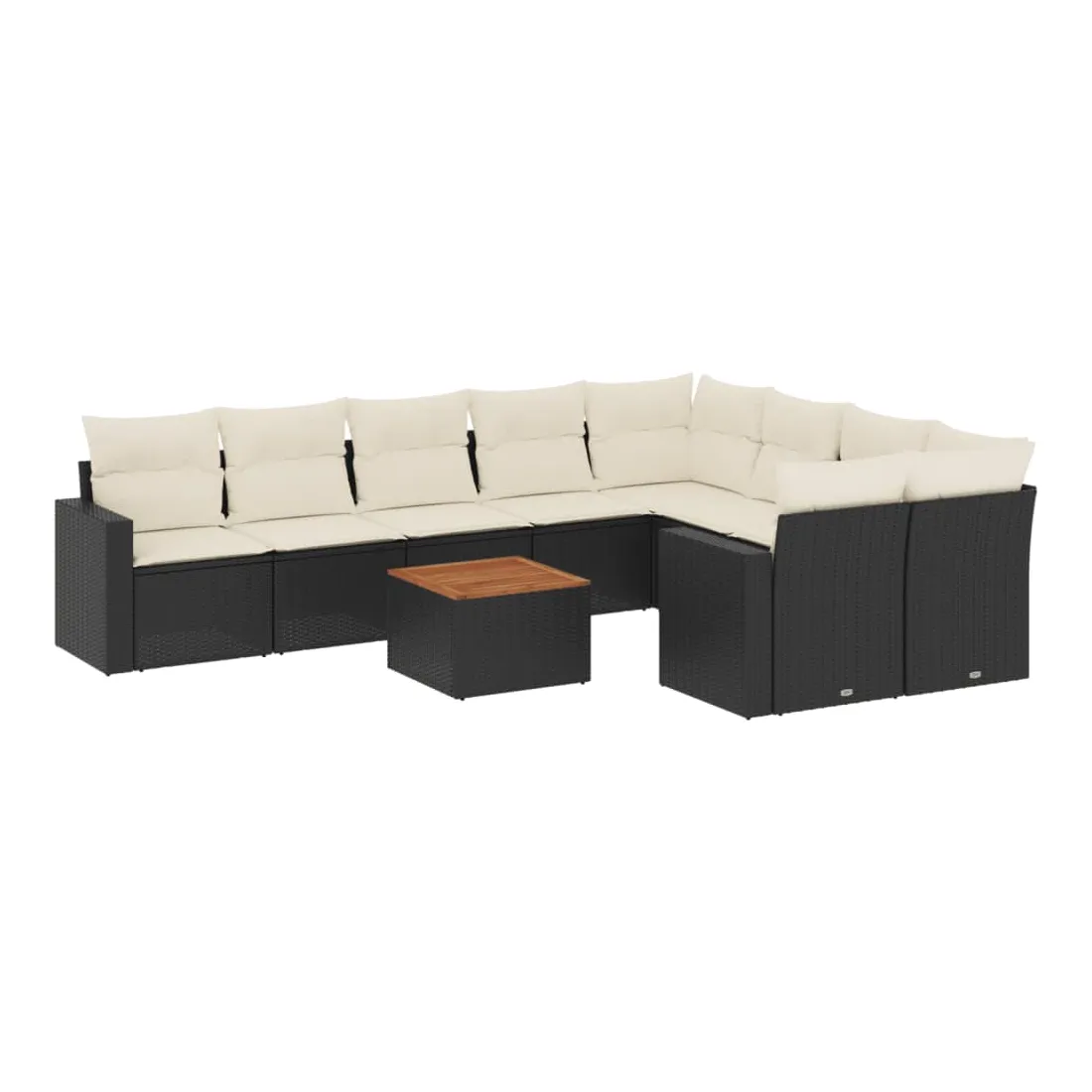 Salon de jardin 10 pcs avec coussins noir résine tressée