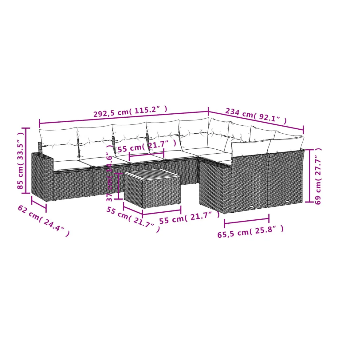 • 9 x coussin d'assise avec housse amovible et lavable