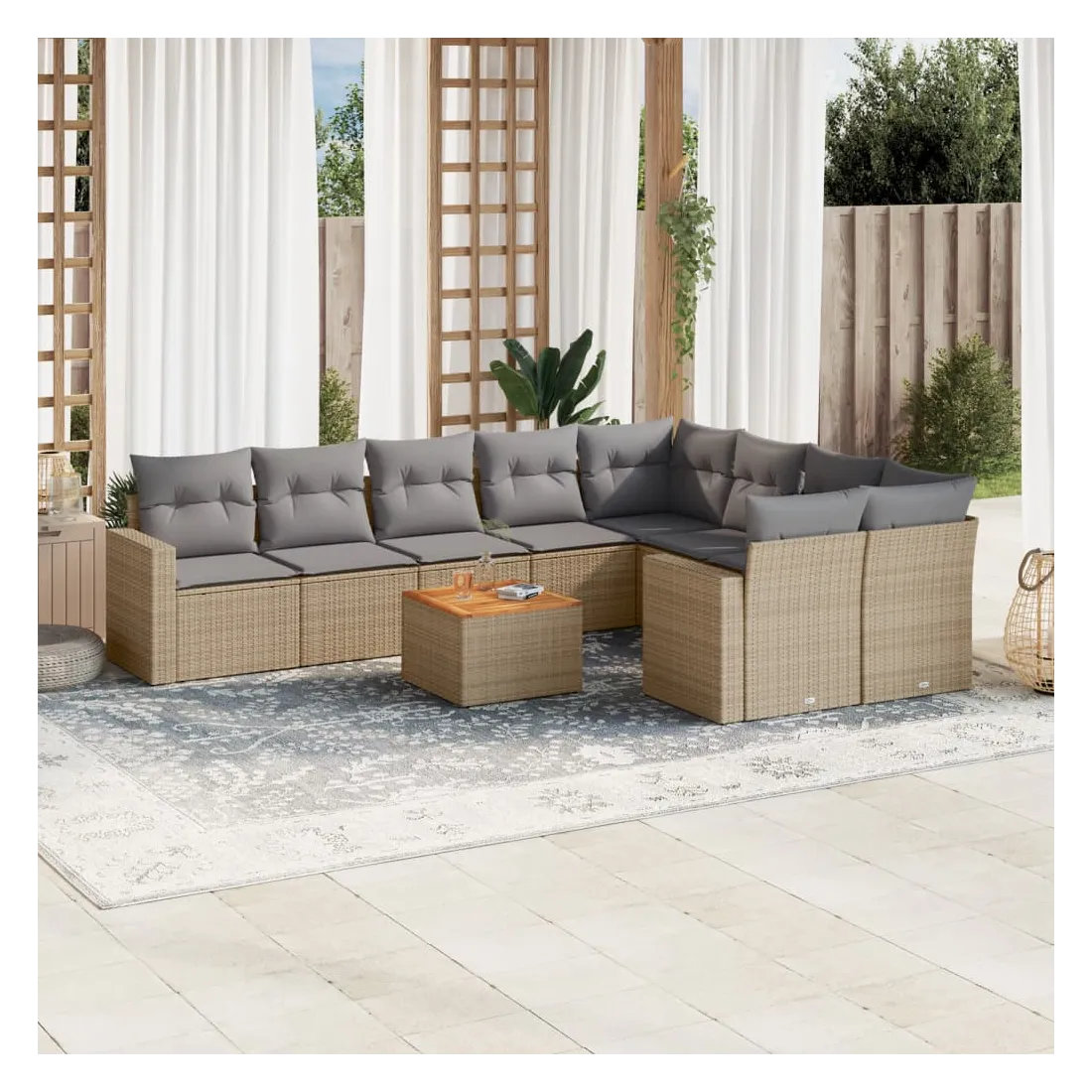 Salon de jardin avec coussins 10 pcs beige résine tressée