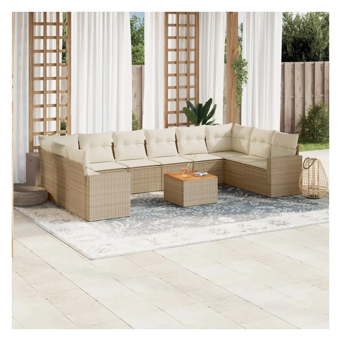 Salon de jardin 11 pcs avec coussins beige résine tressée