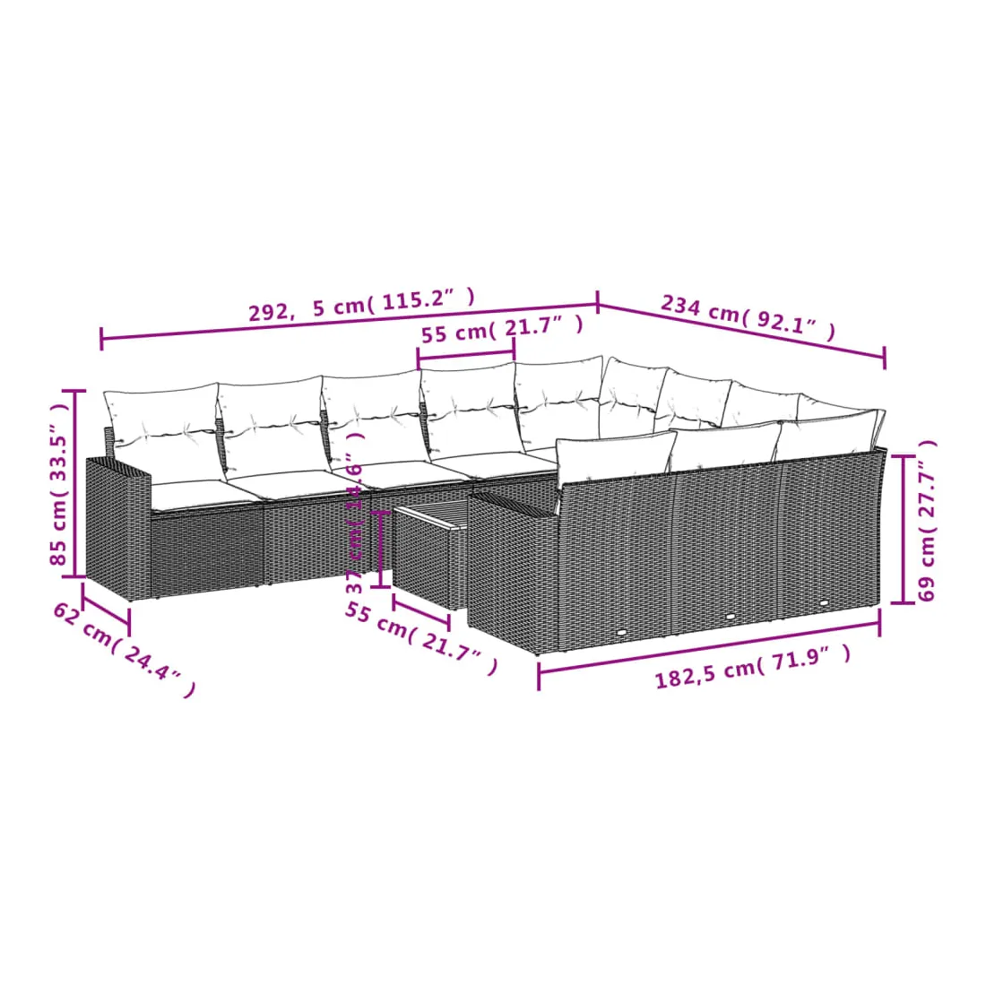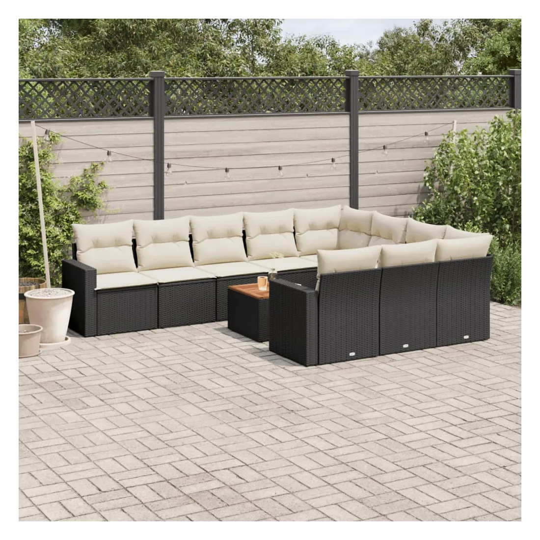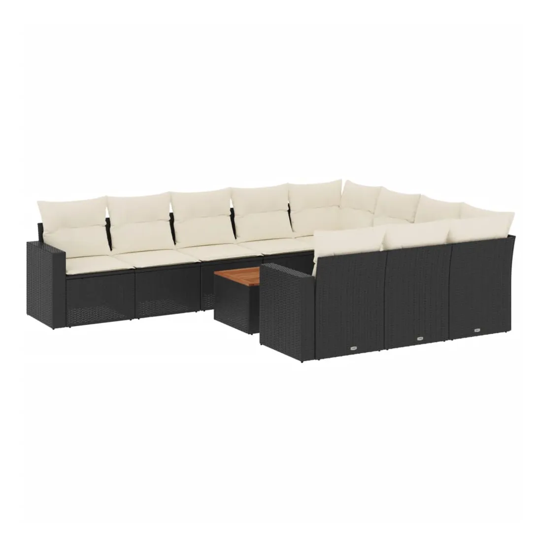Salon de jardin 11 pcs avec coussins noir résine tressée