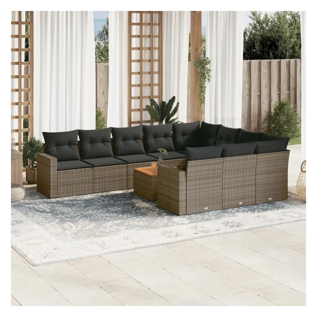 Cet ensemble de canapés de jardin est le complément parfait de votre arrière-cour, terrasse ou patio, offrant un espace confortable et accueillant pour discuter avec la famille et les amis ou simplement se détendre et profiter de l'extérieur. Matériau durable : la résine tressée, également connue sous le nom de poly rotin, est un matériau synthétique solide et nécessitant peu d'entretien qui ressemble au rotin naturel. Il est léger, facile à nettoyer et couramment utilisé pour les meubles d'extérieur en raison de sa durabilité et de ses propriétés de résistance aux intempéries.Dessus stable et facile à nettoyer : cette table de jardin a un dessus en bois d'acacia robuste, durable et facile à nettoyer avec un chiffon humide.Expérience d'assise confortable : ce mobilier d'extérieur, doté de coussins épais, offre une expérience d'assise confortable.Housse amovible et lavable : ces coussins de siège sont dotés de housses amovibles pour un lavage et un entretien faciles.Conception modulaire : cet ensemble de meubles d'extérieur a une conception modulaire, ce qui le rend complètement flexible et facile à déplacer, afin que vous puissiez créer un agencement de meubles d'extérieur personnalisé. Bon à savoir :Pour que vos meubles d'extérieur restent beaux, nous vous recommandons de les protéger avec une housse imperméable.