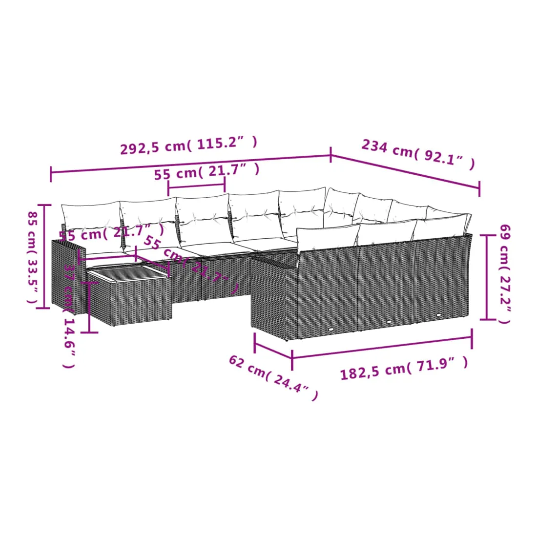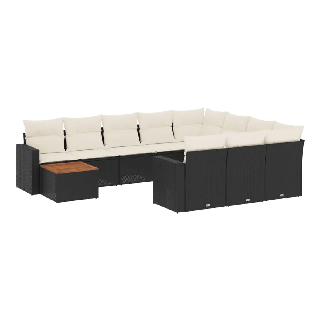 Salon de jardin 11 pcs avec coussins noir résine tressée