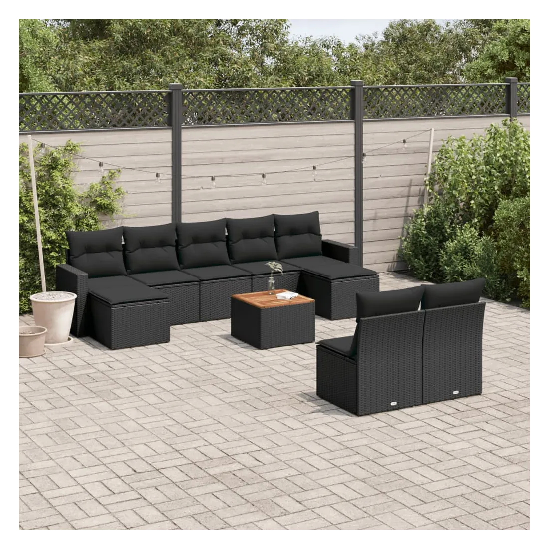 Cet ensemble de canapés de jardin est le complément parfait de votre arrière-cour, terrasse ou patio, offrant un espace confortable et accueillant pour discuter avec la famille et les amis ou simplement se détendre et profiter de l'extérieur. Matériau durable : la résine tressée, également connue sous le nom de poly rotin, est un matériau synthétique solide et nécessitant peu d'entretien qui ressemble au rotin naturel. Il est léger, facile à nettoyer et couramment utilisé pour les meubles d'extérieur en raison de sa durabilité et de ses propriétés de résistance aux intempéries.Dessus stable et facile à nettoyer : cette table de jardin a un dessus en bois d'acacia robuste, durable et facile à nettoyer avec un chiffon humide.Expérience d'assise confortable : ce mobilier d'extérieur, doté de coussins épais, offre une expérience d'assise confortable.Housse amovible et lavable : ces coussins de siège sont dotés de housses amovibles pour un lavage et un entretien faciles.Conception modulaire : cet ensemble de meubles d'extérieur a une conception modulaire, ce qui le rend complètement flexible et facile à déplacer, afin que vous puissiez créer un agencement de meubles d'extérieur personnalisé. Bon à savoir :Pour que vos meubles d'extérieur restent beaux, nous vous recommandons de les protéger avec une housse imperméable.