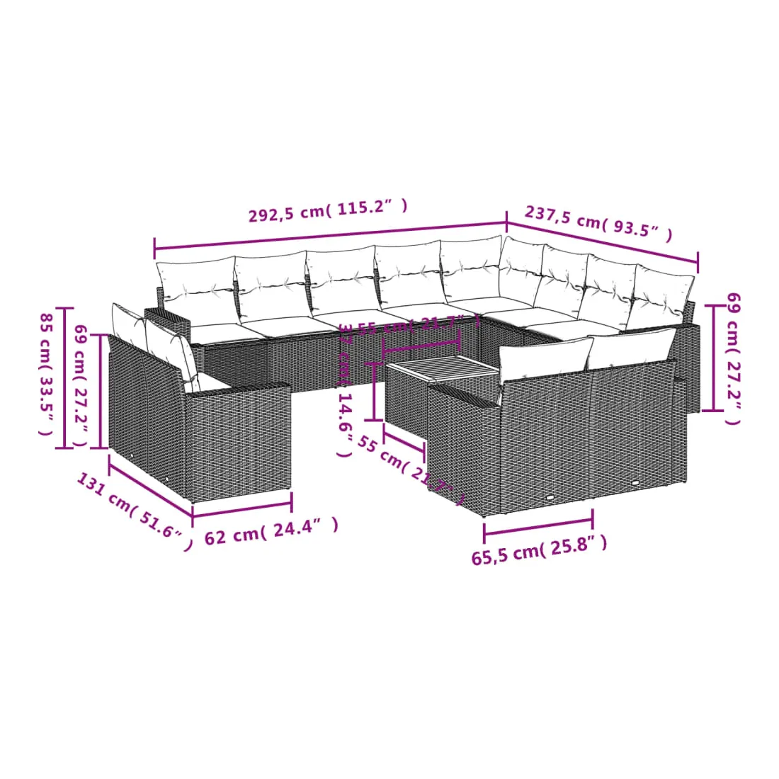 - Dimensions du coussin de dossier : 55 x 45 x 13 cm (L x l x é)