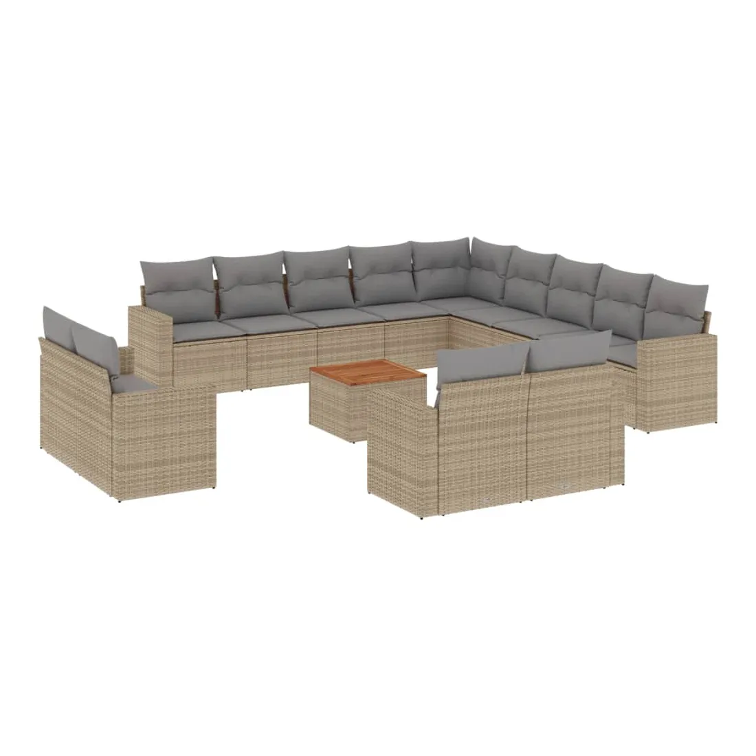Cet ensemble de canapés de jardin est le complément parfait de votre arrière-cour, terrasse ou patio, offrant un espace confortable et accueillant pour discuter avec la famille et les amis ou simplement se détendre et profiter de l'extérieur. Matériau durable : la résine tressée, également connue sous le nom de poly rotin, est un matériau synthétique solide et nécessitant peu d'entretien qui ressemble au rotin naturel. Il est léger, facile à nettoyer et couramment utilisé pour les meubles d'extérieur en raison de sa durabilité et de ses propriétés de résistance aux intempéries.Dessus stable et facile à nettoyer : cette table de jardin a un dessus en bois d'acacia robuste, durable et facile à nettoyer avec un chiffon humide.Expérience d'assise confortable : ce mobilier d'extérieur, doté de coussins épais, offre une expérience d'assise confortable.Housse amovible et lavable : ces coussins de siège sont dotés de housses amovibles pour un lavage et un entretien faciles.Conception modulaire : cet ensemble de meubles d'extérieur a une conception modulaire, ce qui le rend complètement flexible et facile à déplacer, afin que vous puissiez créer un agencement de meubles d'extérieur personnalisé. Bon à savoir :Pour que vos meubles d'extérieur restent beaux, nous vous recommandons de les protéger avec une housse imperméable.