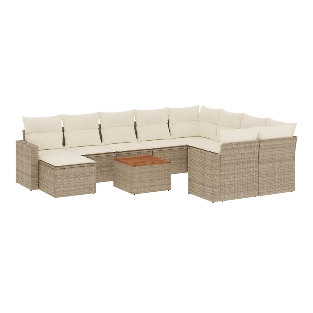 Cet ensemble de canapés de jardin est le complément parfait de votre arrière-cour, terrasse ou patio, offrant un espace confortable et accueillant pour discuter avec la famille et les amis ou simplement se détendre et profiter de l'extérieur. Matériau durable : la résine tressée, également connue sous le nom de poly rotin, est un matériau synthétique solide et nécessitant peu d'entretien qui ressemble au rotin naturel. Il est léger, facile à nettoyer et couramment utilisé pour les meubles d'extérieur en raison de sa durabilité et de ses propriétés de résistance aux intempéries.Dessus stable et facile à nettoyer : cette table de jardin a un dessus en bois d'acacia robuste, durable et facile à nettoyer avec un chiffon humide.Expérience d'assise confortable : ce mobilier d'extérieur, doté de coussins épais, offre une expérience d'assise confortable.Housse amovible et lavable : ces coussins de siège sont dotés de housses amovibles pour un lavage et un entretien faciles.Conception modulaire : cet ensemble de meubles d'extérieur a une conception modulaire, ce qui le rend complètement flexible et facile à déplacer, afin que vous puissiez créer un agencement de meubles d'extérieur personnalisé. Bon à savoir :Pour que vos meubles d'extérieur restent beaux, nous vous recommandons de les protéger avec une housse imperméable.