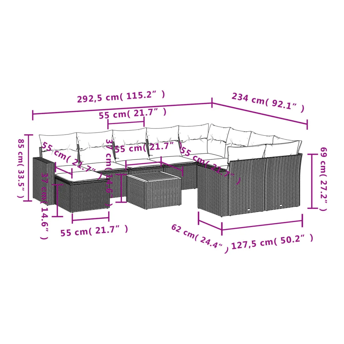 - Dimensions du coussin de dossier : 55 x 45 x 13 cm (L x l x é)