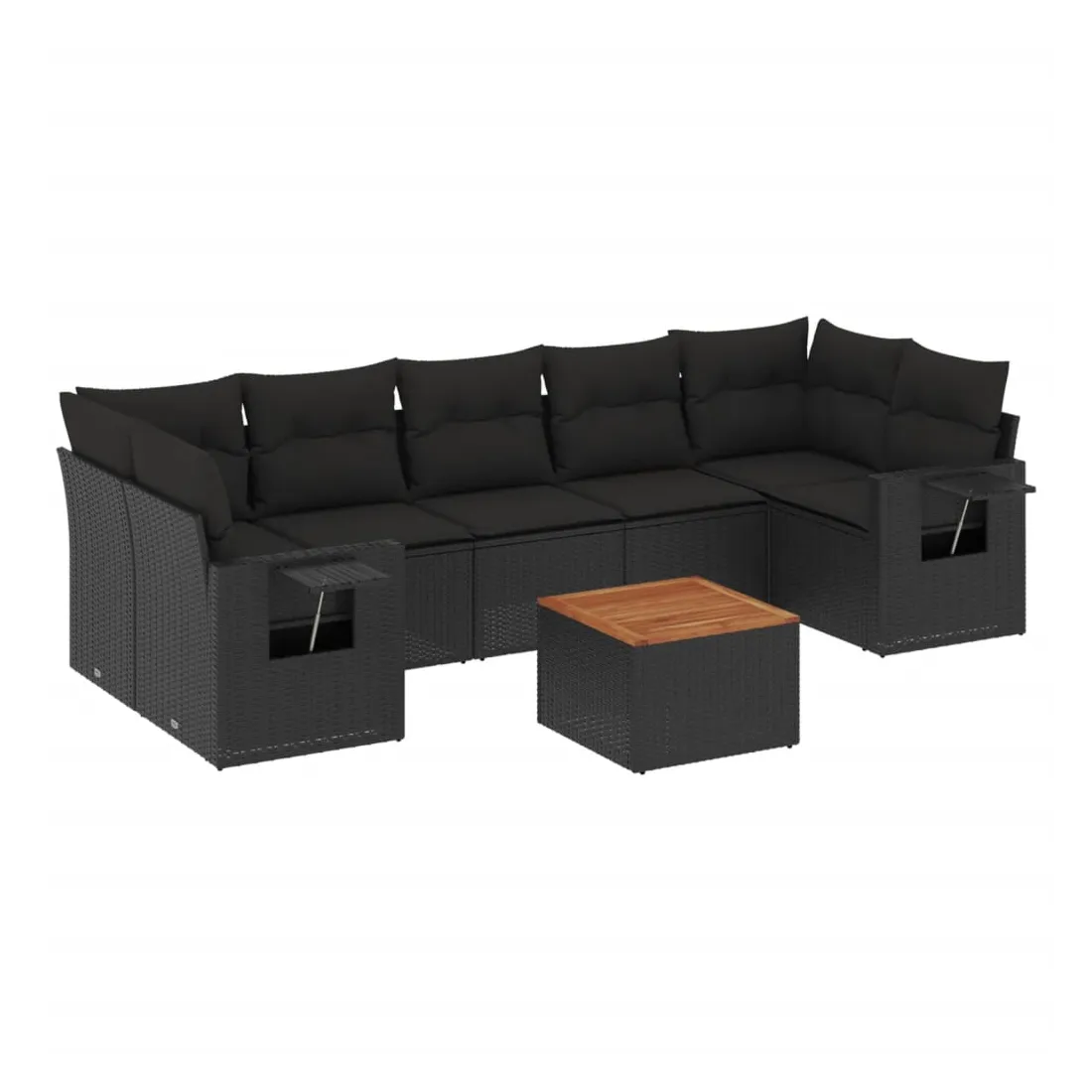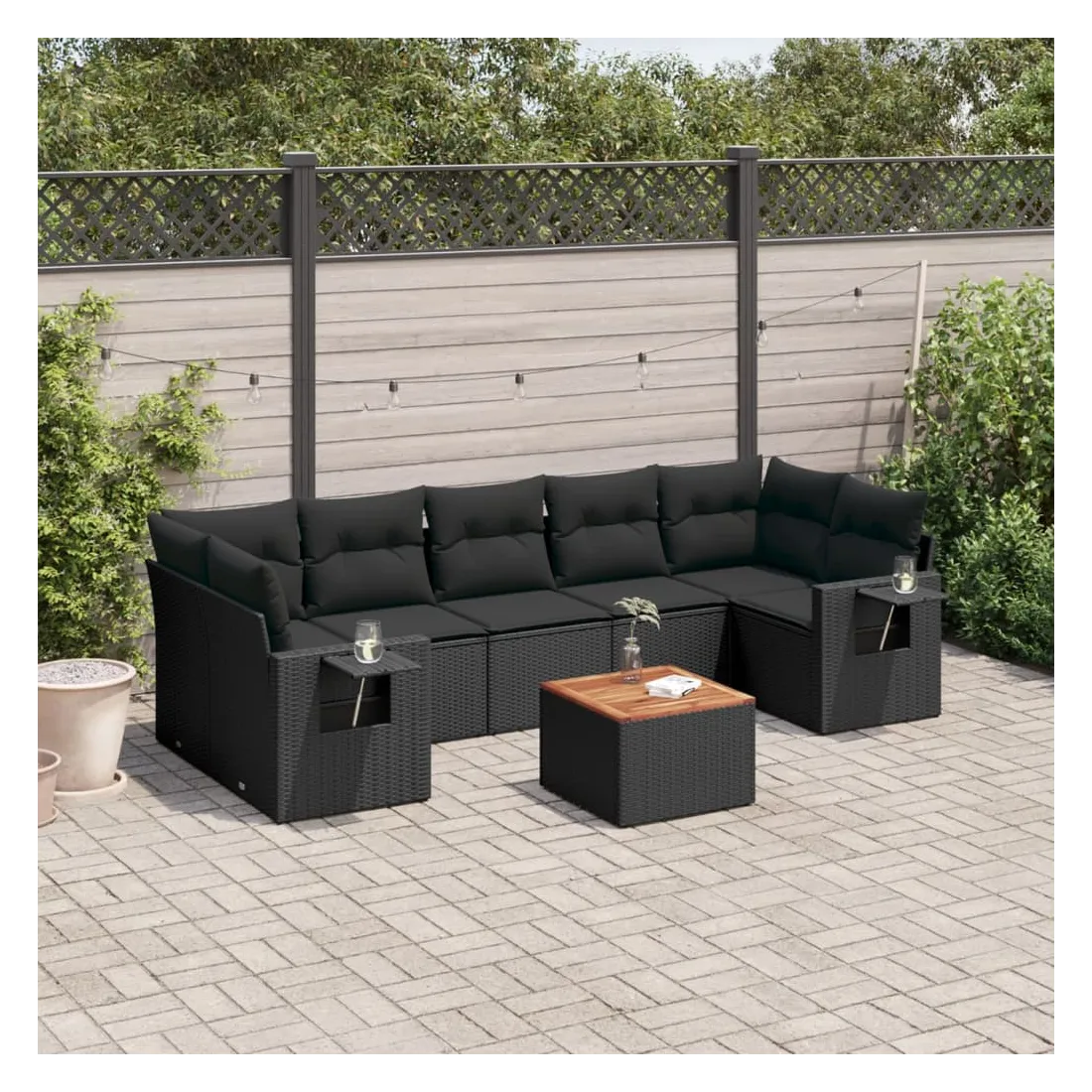 Cet ensemble de canapés de jardin est le complément parfait de votre arrière-cour, terrasse ou patio, offrant un espace confortable et accueillant pour discuter avec la famille et les amis ou simplement se détendre et profiter de l'extérieur. Matériau durable : la résine tressée, également connue sous le nom de poly rotin, est un matériau synthétique solide et nécessitant peu d'entretien qui ressemble au rotin naturel. Il est léger, facile à nettoyer et couramment utilisé pour les meubles d'extérieur en raison de sa durabilité et de ses propriétés de résistance aux intempéries.Table d'appoint pratique : ce mobilier d'extérieur comprend une table d'appoint pliable avec un ressort à gaz sur les accoudoirs, offrant un endroit pratique pour garder vos essentiels à portée de main.Dessus stable et facile à nettoyer : cette table de jardin a un dessus en bois d'acacia robuste, durable et facile à nettoyer avec un chiffon humide.Housse amovible et lavable : ces coussins de siège sont dotés de housses amovibles pour un lavage et un entretien faciles.Conception modulaire : cet ensemble de meubles d'extérieur a une conception modulaire, ce qui le rend complètement flexible et facile à déplacer, afin que vous puissiez créer un agencement de meubles d'extérieur personnalisé. Bon à savoir :Pour que vos meubles d'extérieur restent beaux, nous vous recommandons de les protéger avec une housse imperméable.