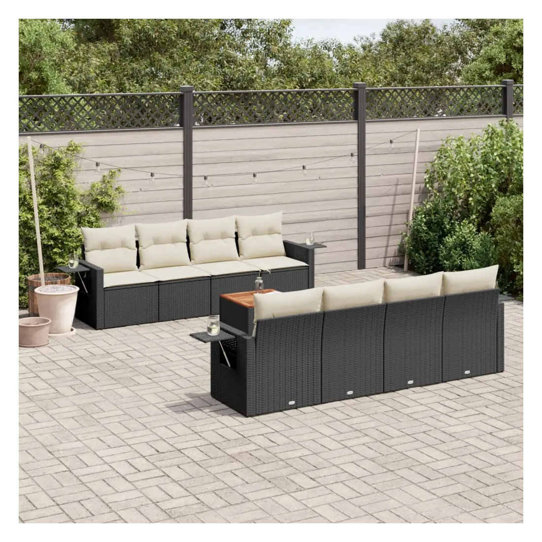 Cet ensemble de canapés de jardin est le complément parfait de votre arrière-cour, terrasse ou patio, offrant un espace confortable et accueillant pour discuter avec la famille et les amis ou simplement se détendre et profiter de l'extérieur. Matériau durable : la résine tressée, également connue sous le nom de poly rotin, est un matériau synthétique solide et nécessitant peu d'entretien qui ressemble au rotin naturel. Il est léger, facile à nettoyer et couramment utilisé pour les meubles d'extérieur en raison de sa durabilité et de ses propriétés de résistance aux intempéries.Table d'appoint pratique : ce mobilier d'extérieur comprend une table d'appoint pliable avec un ressort à gaz sur les accoudoirs, offrant un endroit pratique pour garder vos essentiels à portée de main.Dessus stable et facile à nettoyer : cette table de jardin a un dessus en bois d'acacia robuste, durable et facile à nettoyer avec un chiffon humide.Housse amovible et lavable : ces coussins de siège sont dotés de housses amovibles pour un lavage et un entretien faciles.Conception modulaire : cet ensemble de meubles d'extérieur a une conception modulaire, ce qui le rend complètement flexible et facile à déplacer, afin que vous puissiez créer un agencement de meubles d'extérieur personnalisé. Bon à savoir :Pour que vos meubles d'extérieur restent beaux, nous vous recommandons de les protéger avec une housse imperméable.