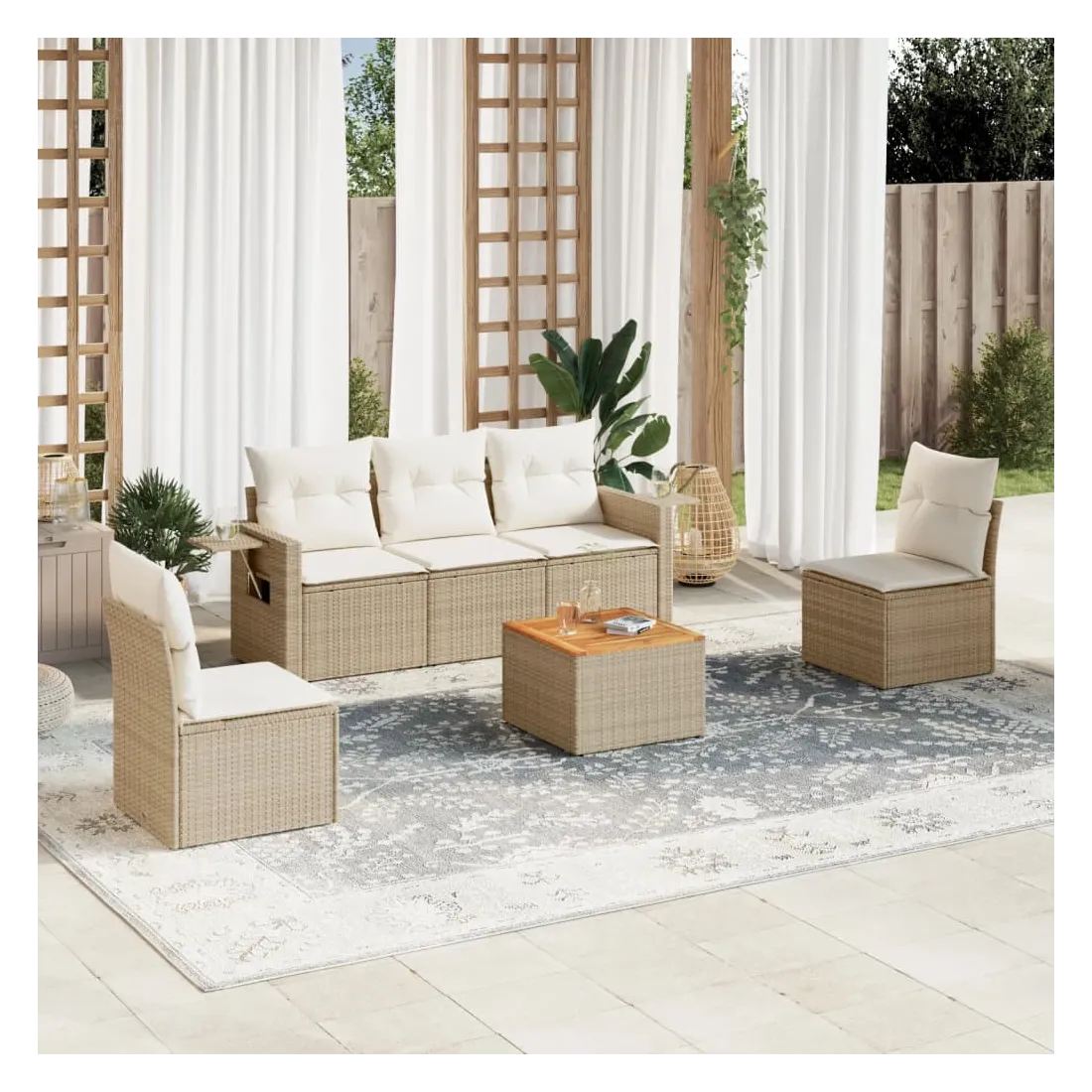 Cet ensemble de canapés de jardin est le complément parfait de votre arrière-cour, terrasse ou patio, offrant un espace confortable et accueillant pour discuter avec la famille et les amis ou simplement se détendre et profiter de l'extérieur. Matériau durable : la résine tressée, également connue sous le nom de poly rotin, est un matériau synthétique solide et nécessitant peu d'entretien qui ressemble au rotin naturel. Il est léger, facile à nettoyer et couramment utilisé pour les meubles d'extérieur en raison de sa durabilité et de ses propriétés de résistance aux intempéries.Table d'appoint pratique : ce mobilier d'extérieur comprend une table d'appoint pliable avec un ressort à gaz sur les accoudoirs, offrant un endroit pratique pour garder vos essentiels à portée de main.Dessus stable et facile à nettoyer : cette table de jardin a un dessus en bois d'acacia robuste, durable et facile à nettoyer avec un chiffon humide.Housse amovible et lavable : ces coussins de siège sont dotés de housses amovibles pour un lavage et un entretien faciles.Conception modulaire : cet ensemble de meubles d'extérieur a une conception modulaire, ce qui le rend complètement flexible et facile à déplacer, afin que vous puissiez créer un agencement de meubles d'extérieur personnalisé. Bon à savoir :Pour que vos meubles d'extérieur restent beaux, nous vous recommandons de les protéger avec une housse imperméable.