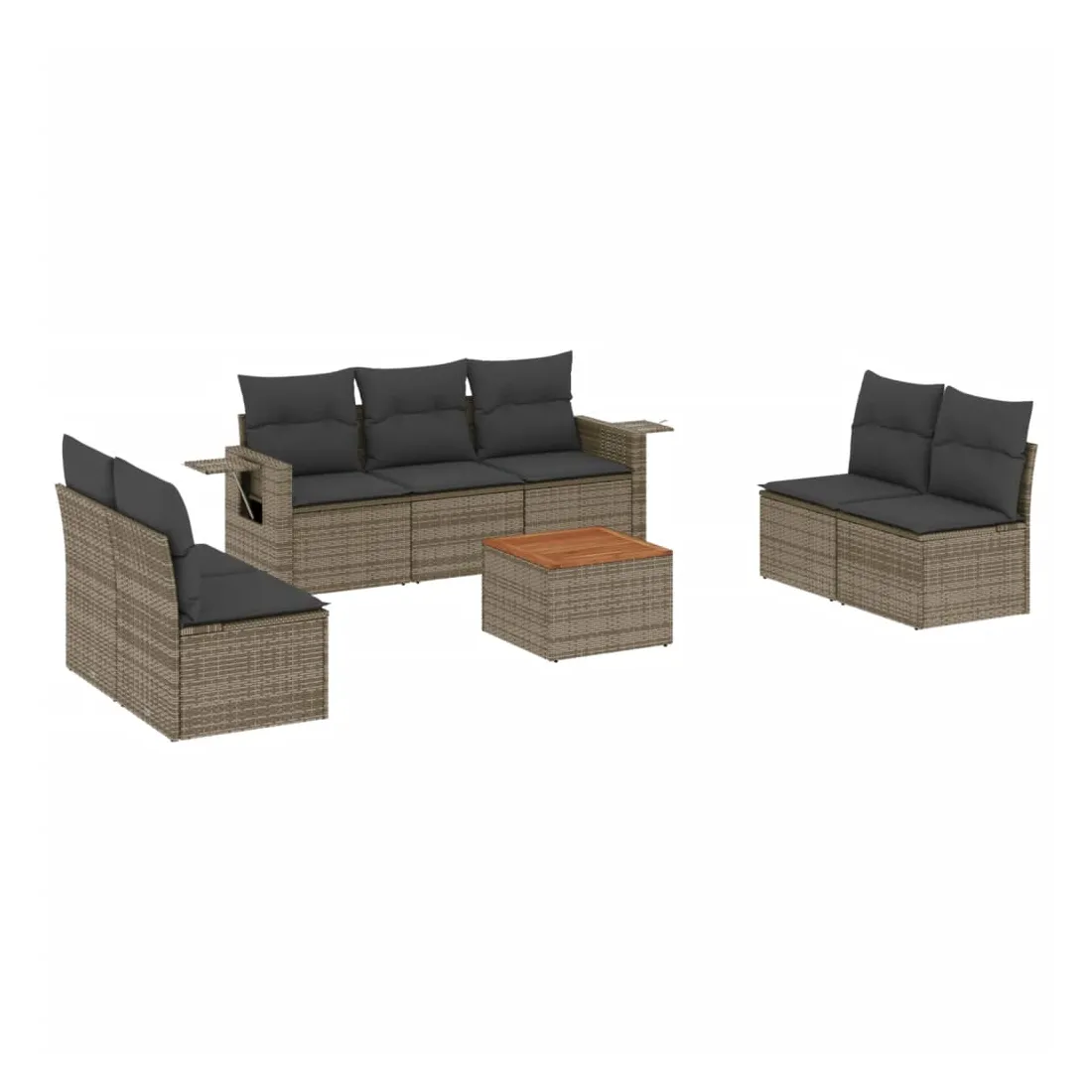 Cet ensemble de canapés de jardin est le complément parfait de votre arrière-cour, terrasse ou patio, offrant un espace confortable et accueillant pour discuter avec la famille et les amis ou simplement se détendre et profiter de l'extérieur. Matériau durable : la résine tressée, également connue sous le nom de poly rotin, est un matériau synthétique solide et nécessitant peu d'entretien qui ressemble au rotin naturel. Il est léger, facile à nettoyer et couramment utilisé pour les meubles d'extérieur en raison de sa durabilité et de ses propriétés de résistance aux intempéries.Table d'appoint pratique : ce mobilier d'extérieur comprend une table d'appoint pliable avec un ressort à gaz sur les accoudoirs, offrant un endroit pratique pour garder vos essentiels à portée de main.Dessus stable et facile à nettoyer : cette table de jardin a un dessus en bois d'acacia robuste, durable et facile à nettoyer avec un chiffon humide.Housse amovible et lavable : ces coussins de siège sont dotés de housses amovibles pour un lavage et un entretien faciles.Conception modulaire : cet ensemble de meubles d'extérieur a une conception modulaire, ce qui le rend complètement flexible et facile à déplacer, afin que vous puissiez créer un agencement de meubles d'extérieur personnalisé. Bon à savoir :Pour que vos meubles d'extérieur restent beaux, nous vous recommandons de les protéger avec une housse imperméable.