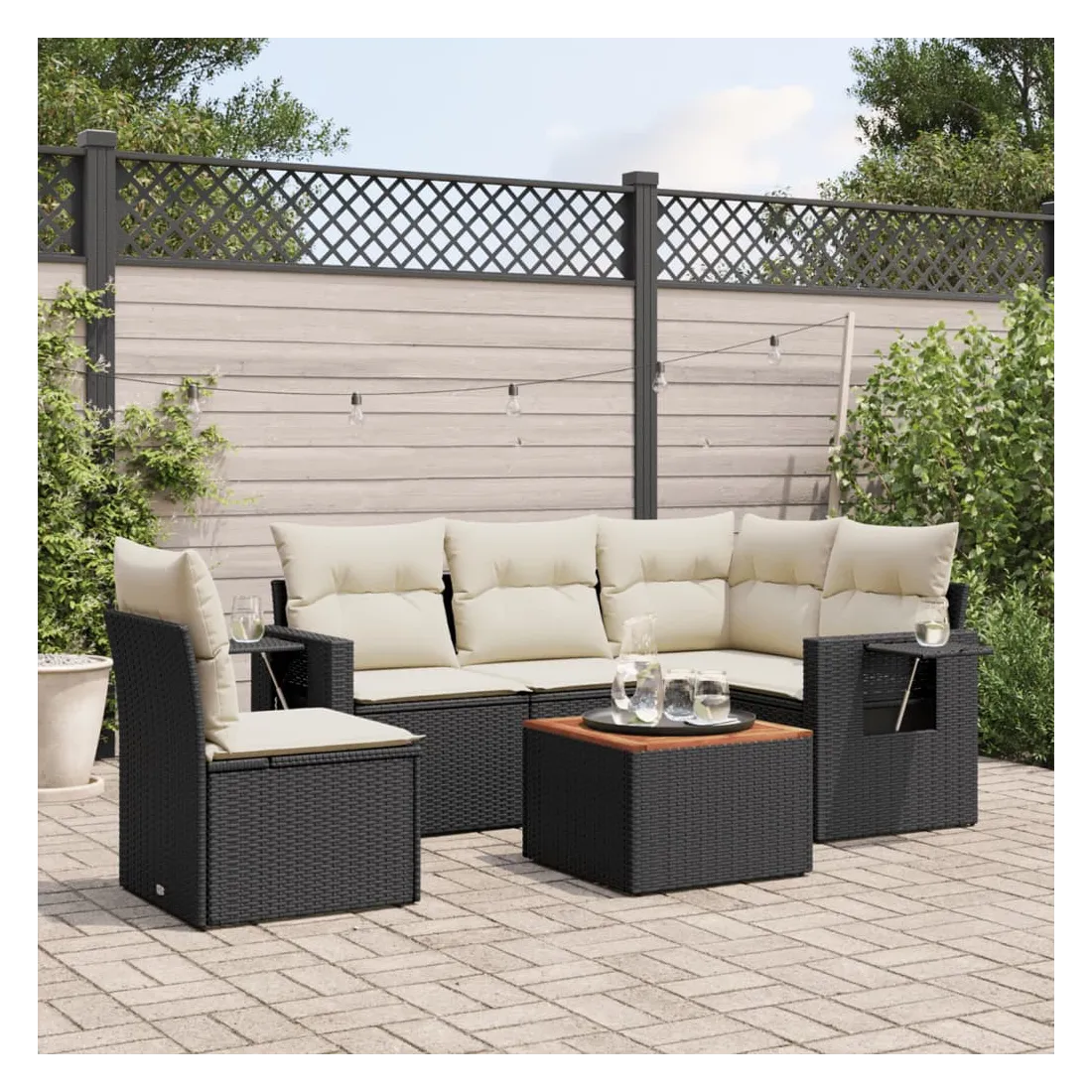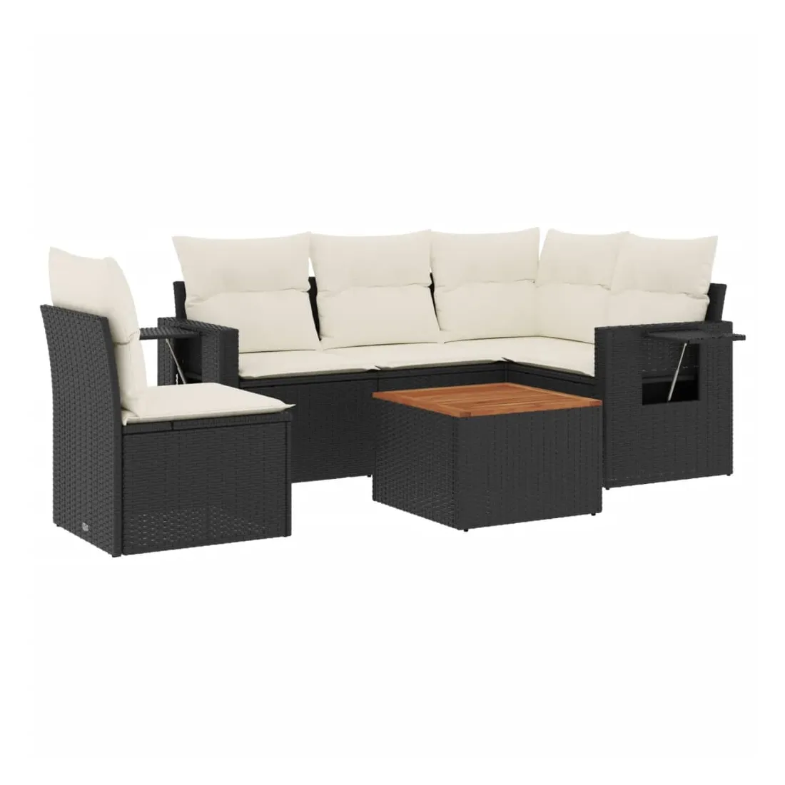 Cet ensemble de canapés de jardin est le complément parfait de votre arrière-cour, terrasse ou patio, offrant un espace confortable et accueillant pour discuter avec la famille et les amis ou simplement se détendre et profiter de l'extérieur. Matériau durable : la résine tressée, également connue sous le nom de poly rotin, est un matériau synthétique solide et nécessitant peu d'entretien qui ressemble au rotin naturel. Il est léger, facile à nettoyer et couramment utilisé pour les meubles d'extérieur en raison de sa durabilité et de ses propriétés de résistance aux intempéries.Table d'appoint pratique : ce mobilier d'extérieur comprend une table d'appoint pliable avec un ressort à gaz sur les accoudoirs, offrant un endroit pratique pour garder vos essentiels à portée de main.Dessus stable et facile à nettoyer : cette table de jardin a un dessus en bois d'acacia robuste, durable et facile à nettoyer avec un chiffon humide.Housse amovible et lavable : ces coussins de siège sont dotés de housses amovibles pour un lavage et un entretien faciles.Conception modulaire : cet ensemble de meubles d'extérieur a une conception modulaire, ce qui le rend complètement flexible et facile à déplacer, afin que vous puissiez créer un agencement de meubles d'extérieur personnalisé. Bon à savoir :Pour que vos meubles d'extérieur restent beaux, nous vous recommandons de les protéger avec une housse imperméable.