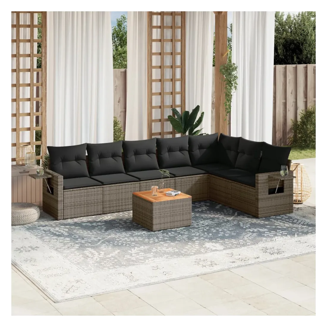 Cet ensemble de canapés de jardin est le complément parfait de votre arrière-cour, terrasse ou patio, offrant un espace confortable et accueillant pour discuter avec la famille et les amis ou simplement se détendre et profiter de l'extérieur. Matériau durable : la résine tressée, également connue sous le nom de poly rotin, est un matériau synthétique solide et nécessitant peu d'entretien qui ressemble au rotin naturel. Il est léger, facile à nettoyer et couramment utilisé pour les meubles d'extérieur en raison de sa durabilité et de ses propriétés de résistance aux intempéries.Table d'appoint pratique : ce mobilier d'extérieur comprend une table d'appoint pliable avec un ressort à gaz sur les accoudoirs, offrant un endroit pratique pour garder vos essentiels à portée de main.Dessus stable et facile à nettoyer : cette table de jardin a un dessus en bois d'acacia robuste, durable et facile à nettoyer avec un chiffon humide.Housse amovible et lavable : ces coussins de siège sont dotés de housses amovibles pour un lavage et un entretien faciles.Conception modulaire : cet ensemble de meubles d'extérieur a une conception modulaire, ce qui le rend complètement flexible et facile à déplacer, afin que vous puissiez créer un agencement de meubles d'extérieur personnalisé. Bon à savoir :Pour que vos meubles d'extérieur restent beaux, nous vous recommandons de les protéger avec une housse imperméable.