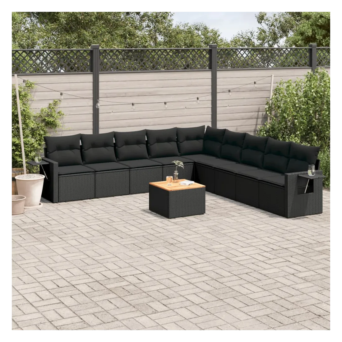 Cet ensemble de canapés de jardin est le complément parfait de votre arrière-cour, terrasse ou patio, offrant un espace confortable et accueillant pour discuter avec la famille et les amis ou simplement se détendre et profiter de l'extérieur. Matériau durable : la résine tressée, également connue sous le nom de poly rotin, est un matériau synthétique solide et nécessitant peu d'entretien qui ressemble au rotin naturel. Il est léger, facile à nettoyer et couramment utilisé pour les meubles d'extérieur en raison de sa durabilité et de ses propriétés de résistance aux intempéries.Table d'appoint pratique : ce mobilier d'extérieur comprend une table d'appoint pliable avec un ressort à gaz sur les accoudoirs, offrant un endroit pratique pour garder vos essentiels à portée de main.Dessus stable et facile à nettoyer : cette table de jardin a un dessus en bois d'acacia robuste, durable et facile à nettoyer avec un chiffon humide.Housse amovible et lavable : ces coussins de siège sont dotés de housses amovibles pour un lavage et un entretien faciles.Conception modulaire : cet ensemble de meubles d'extérieur a une conception modulaire, ce qui le rend complètement flexible et facile à déplacer, afin que vous puissiez créer un agencement de meubles d'extérieur personnalisé. Bon à savoir :Pour que vos meubles d'extérieur restent beaux, nous vous recommandons de les protéger avec une housse imperméable.