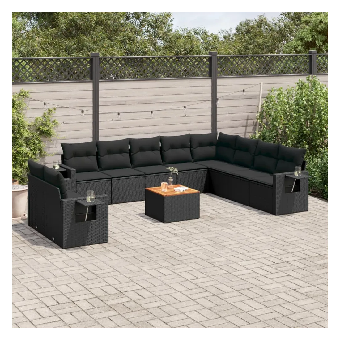 Cet ensemble de canapés de jardin est le complément parfait de votre arrière-cour, terrasse ou patio, offrant un espace confortable et accueillant pour discuter avec la famille et les amis ou simplement se détendre et profiter de l'extérieur. Matériau durable : la résine tressée, également connue sous le nom de poly rotin, est un matériau synthétique solide et nécessitant peu d'entretien qui ressemble au rotin naturel. Il est léger, facile à nettoyer et couramment utilisé pour les meubles d'extérieur en raison de sa durabilité et de ses propriétés de résistance aux intempéries.Table d'appoint pratique : ce mobilier d'extérieur comprend une table d'appoint pliable avec un ressort à gaz sur les accoudoirs, offrant un endroit pratique pour garder vos essentiels à portée de main.Dessus stable et facile à nettoyer : cette table de jardin a un dessus en bois d'acacia robuste, durable et facile à nettoyer avec un chiffon humide.Housse amovible et lavable : ces coussins de siège sont dotés de housses amovibles pour un lavage et un entretien faciles.Conception modulaire : cet ensemble de meubles d'extérieur a une conception modulaire, ce qui le rend complètement flexible et facile à déplacer, afin que vous puissiez créer un agencement de meubles d'extérieur personnalisé. Bon à savoir :Pour que vos meubles d'extérieur restent beaux, nous vous recommandons de les protéger avec une housse imperméable.