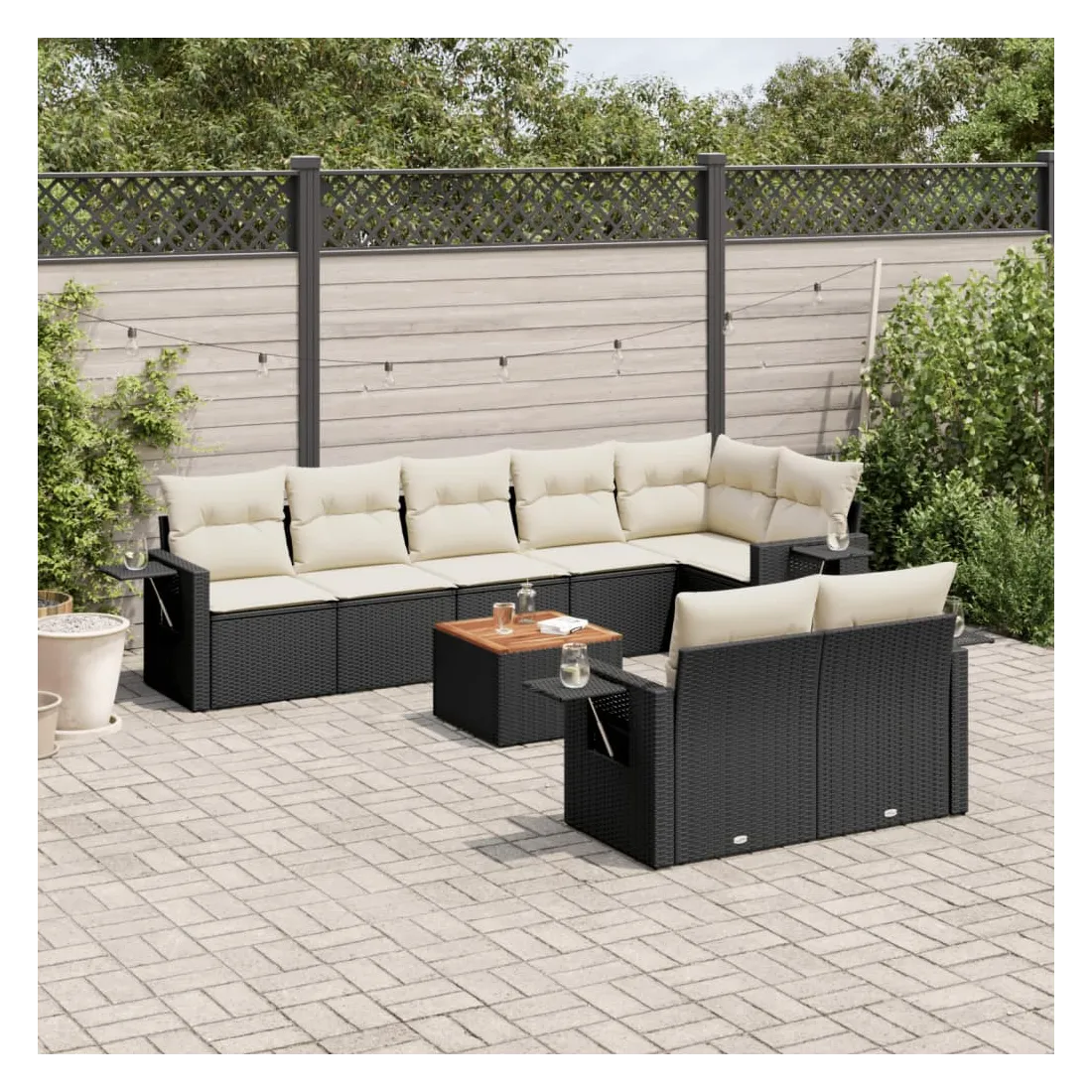 Cet ensemble de canapés de jardin est le complément parfait de votre arrière-cour, terrasse ou patio, offrant un espace confortable et accueillant pour discuter avec la famille et les amis ou simplement se détendre et profiter de l'extérieur. Matériau durable : la résine tressée, également connue sous le nom de poly rotin, est un matériau synthétique solide et nécessitant peu d'entretien qui ressemble au rotin naturel. Il est léger, facile à nettoyer et couramment utilisé pour les meubles d'extérieur en raison de sa durabilité et de ses propriétés de résistance aux intempéries.Table d'appoint pratique : ce mobilier d'extérieur comprend une table d'appoint pliable avec un ressort à gaz sur les accoudoirs, offrant un endroit pratique pour garder vos essentiels à portée de main.Dessus stable et facile à nettoyer : cette table de jardin a un dessus en bois d'acacia robuste, durable et facile à nettoyer avec un chiffon humide.Housse amovible et lavable : ces coussins de siège sont dotés de housses amovibles pour un lavage et un entretien faciles.Conception modulaire : cet ensemble de meubles d'extérieur a une conception modulaire, ce qui le rend complètement flexible et facile à déplacer, afin que vous puissiez créer un agencement de meubles d'extérieur personnalisé. Bon à savoir :Pour que vos meubles d'extérieur restent beaux, nous vous recommandons de les protéger avec une housse imperméable.