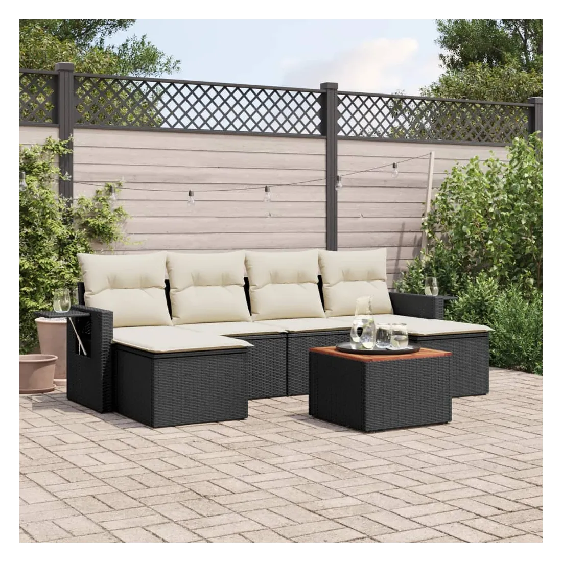 Cet ensemble de canapés de jardin est le complément parfait de votre arrière-cour, terrasse ou patio, offrant un espace confortable et accueillant pour discuter avec la famille et les amis ou simplement se détendre et profiter de l'extérieur. Matériau durable : la résine tressée, également connue sous le nom de poly rotin, est un matériau synthétique solide et nécessitant peu d'entretien qui ressemble au rotin naturel. Il est léger, facile à nettoyer et couramment utilisé pour les meubles d'extérieur en raison de sa durabilité et de ses propriétés de résistance aux intempéries.Table d'appoint pratique : ce mobilier d'extérieur comprend une table d'appoint pliable avec un ressort à gaz sur les accoudoirs, offrant un endroit pratique pour garder vos essentiels à portée de main.Dessus stable et facile à nettoyer : cette table de jardin a un dessus en bois d'acacia robuste, durable et facile à nettoyer avec un chiffon humide.Housse amovible et lavable : ces coussins de siège sont dotés de housses amovibles pour un lavage et un entretien faciles.Conception modulaire : cet ensemble de meubles d'extérieur a une conception modulaire, ce qui le rend complètement flexible et facile à déplacer, afin que vous puissiez créer un agencement de meubles d'extérieur personnalisé. Bon à savoir :Pour que vos meubles d'extérieur restent beaux, nous vous recommandons de les protéger avec une housse imperméable.