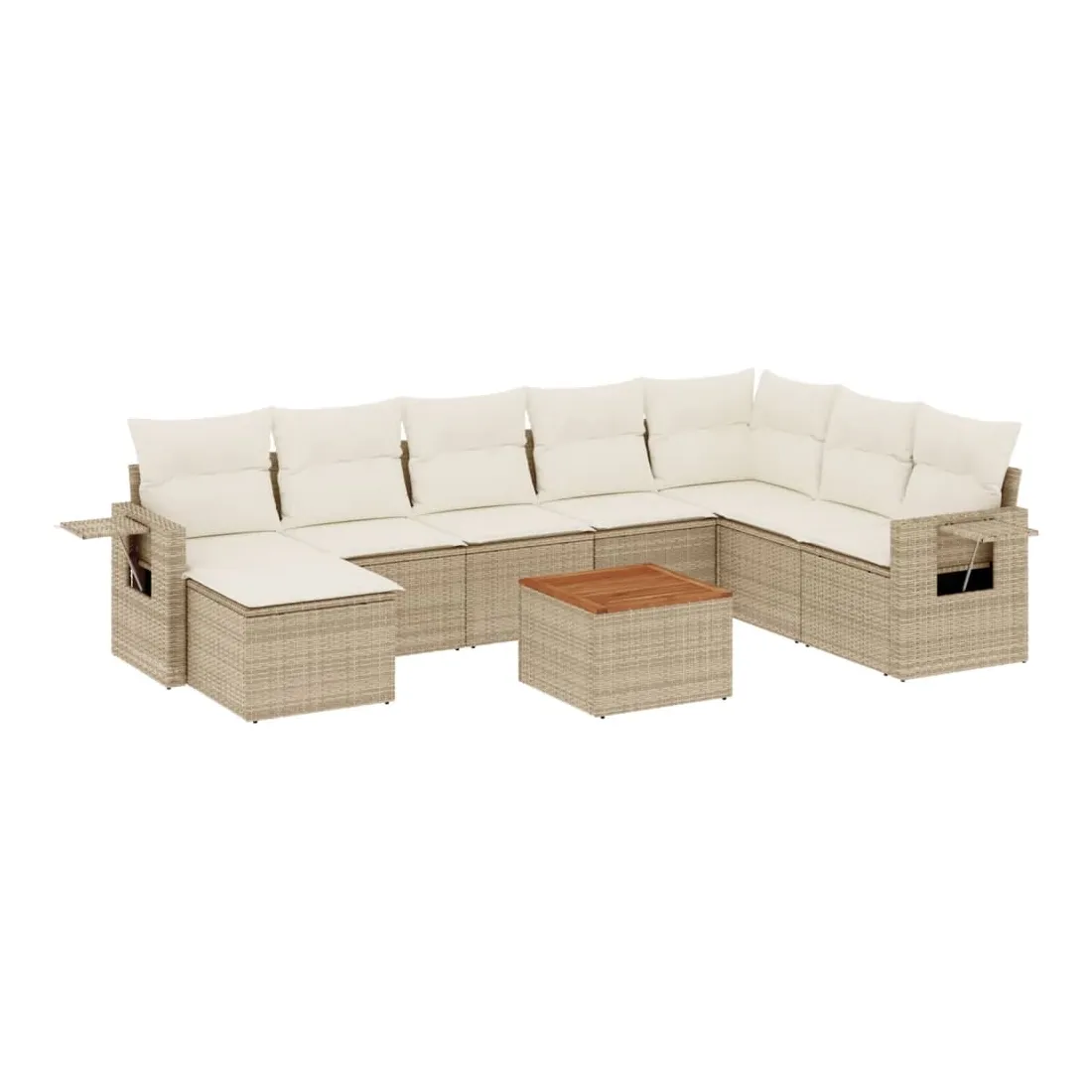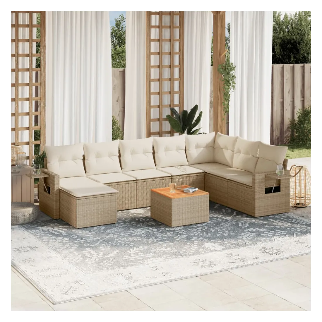 Cet ensemble de canapés de jardin est le complément parfait de votre arrière-cour, terrasse ou patio, offrant un espace confortable et accueillant pour discuter avec la famille et les amis ou simplement se détendre et profiter de l'extérieur. Matériau durable : la résine tressée, également connue sous le nom de poly rotin, est un matériau synthétique solide et nécessitant peu d'entretien qui ressemble au rotin naturel. Il est léger, facile à nettoyer et couramment utilisé pour les meubles d'extérieur en raison de sa durabilité et de ses propriétés de résistance aux intempéries.Table d'appoint pratique : ce mobilier d'extérieur comprend une table d'appoint pliable avec un ressort à gaz sur les accoudoirs, offrant un endroit pratique pour garder vos essentiels à portée de main.Dessus stable et facile à nettoyer : cette table de jardin a un dessus en bois d'acacia robuste, durable et facile à nettoyer avec un chiffon humide.Housse amovible et lavable : ces coussins de siège sont dotés de housses amovibles pour un lavage et un entretien faciles.Conception modulaire : cet ensemble de meubles d'extérieur a une conception modulaire, ce qui le rend complètement flexible et facile à déplacer, afin que vous puissiez créer un agencement de meubles d'extérieur personnalisé. Bon à savoir :Pour que vos meubles d'extérieur restent beaux, nous vous recommandons de les protéger avec une housse imperméable.