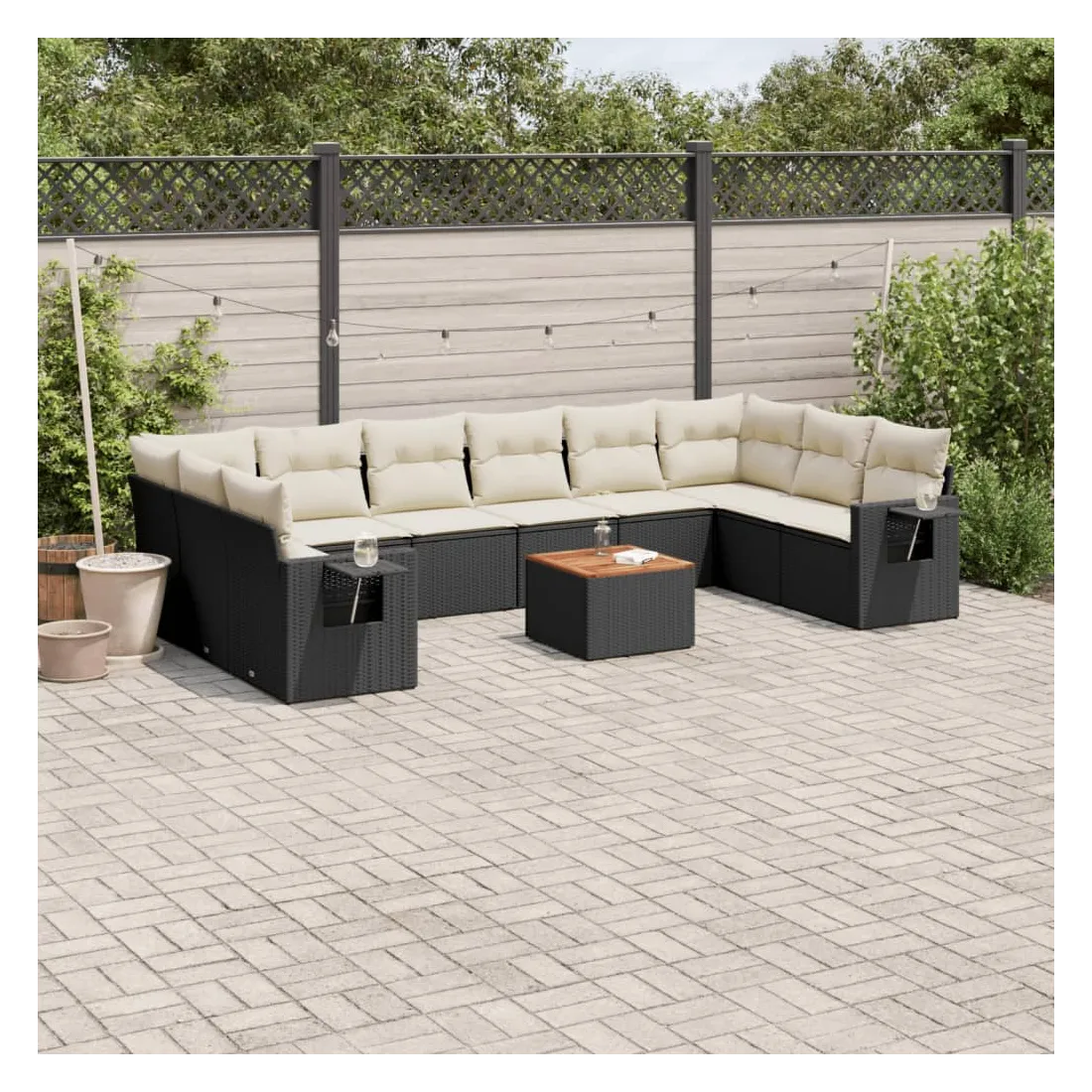 Salon de jardin 11 pcs avec coussins noir résine tressée