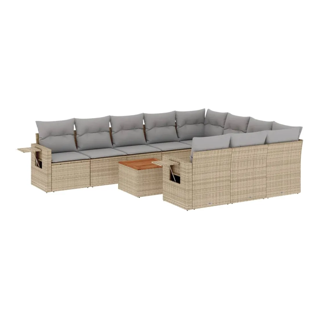 Salon de jardin 11 pcs avec coussins beige résine tressée