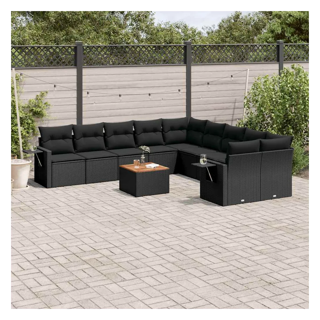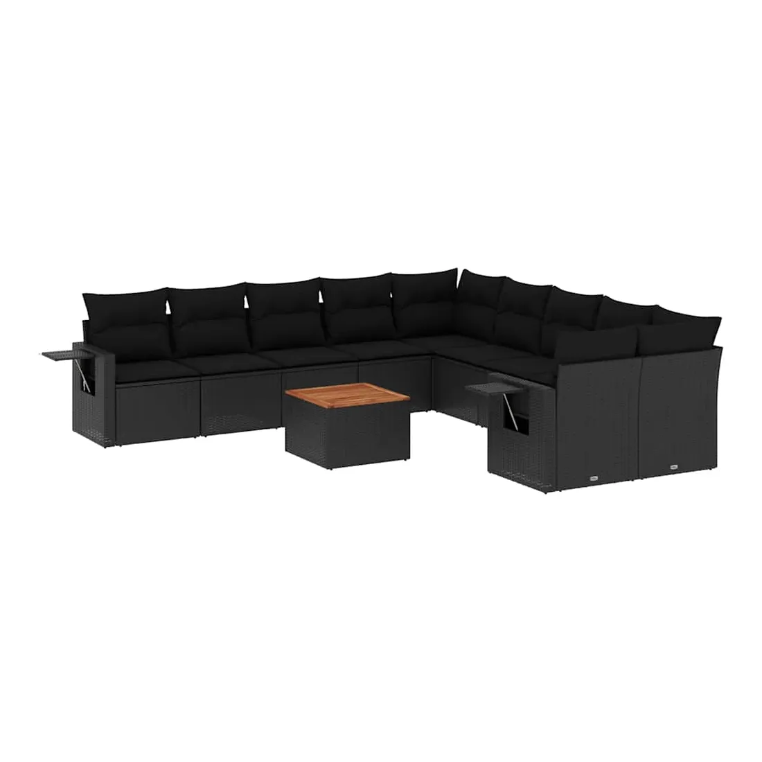 Salon de jardin 11 pcs avec coussins noir résine tressée