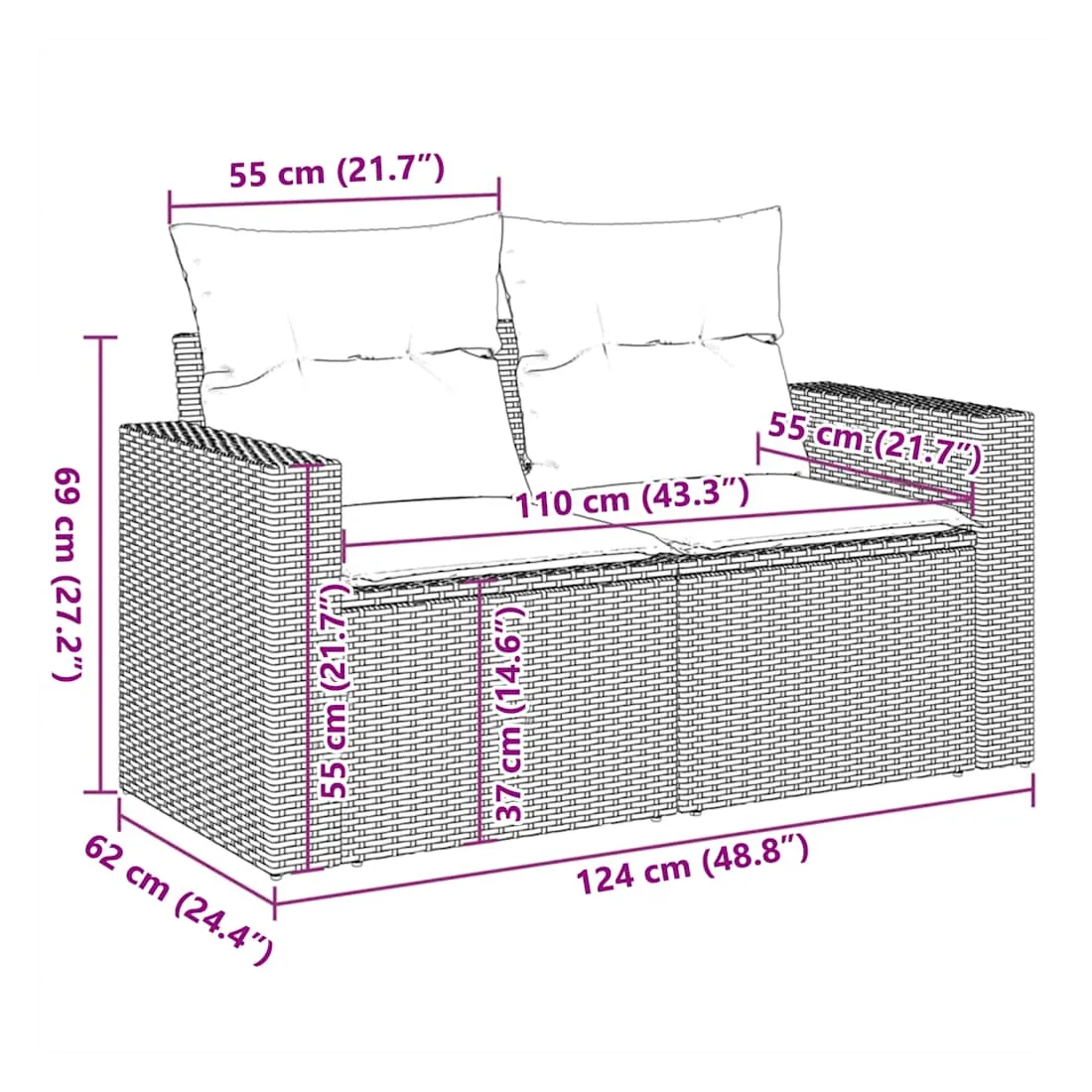 • Dimensions : 55 x 55 x 37 cm (L x l x H)