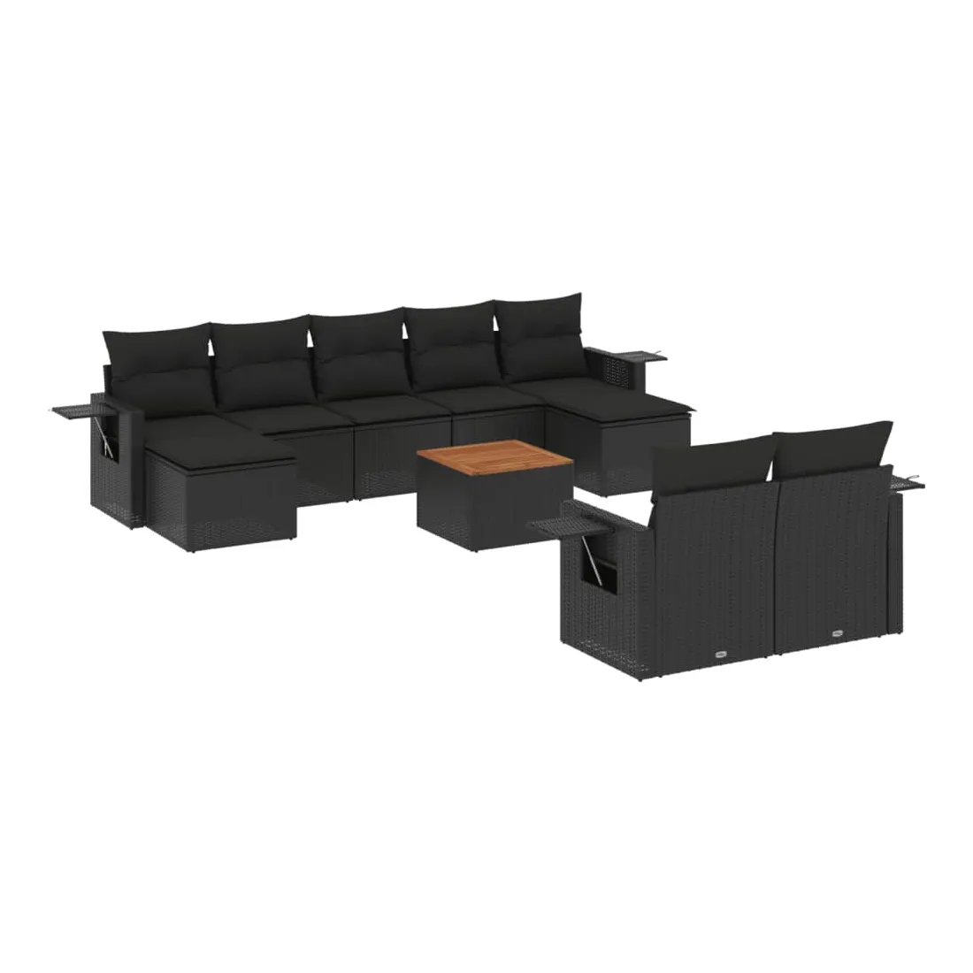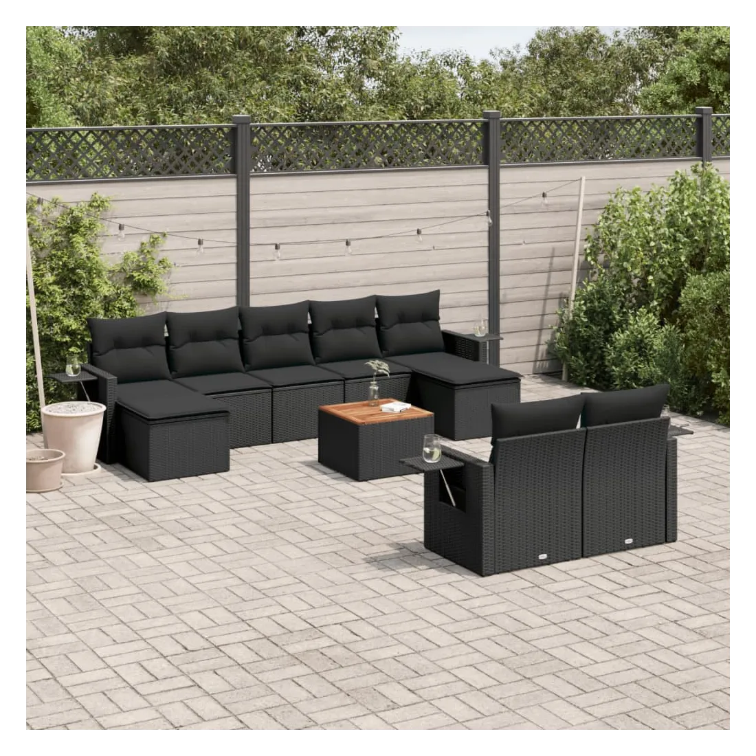 Cet ensemble de canapés de jardin est le complément parfait de votre arrière-cour, terrasse ou patio, offrant un espace confortable et accueillant pour discuter avec la famille et les amis ou simplement se détendre et profiter de l'extérieur. Matériau durable : la résine tressée, également connue sous le nom de poly rotin, est un matériau synthétique solide et nécessitant peu d'entretien qui ressemble au rotin naturel. Il est léger, facile à nettoyer et couramment utilisé pour les meubles d'extérieur en raison de sa durabilité et de ses propriétés de résistance aux intempéries.Table d'appoint pratique : ce mobilier d'extérieur comprend une table d'appoint pliable avec un ressort à gaz sur les accoudoirs, offrant un endroit pratique pour garder vos essentiels à portée de main.Dessus stable et facile à nettoyer : cette table de jardin a un dessus en bois d'acacia robuste, durable et facile à nettoyer avec un chiffon humide.Housse amovible et lavable : ces coussins de siège sont dotés de housses amovibles pour un lavage et un entretien faciles.Conception modulaire : cet ensemble de meubles d'extérieur a une conception modulaire, ce qui le rend complètement flexible et facile à déplacer, afin que vous puissiez créer un agencement de meubles d'extérieur personnalisé. Bon à savoir :Pour que vos meubles d'extérieur restent beaux, nous vous recommandons de les protéger avec une housse imperméable.