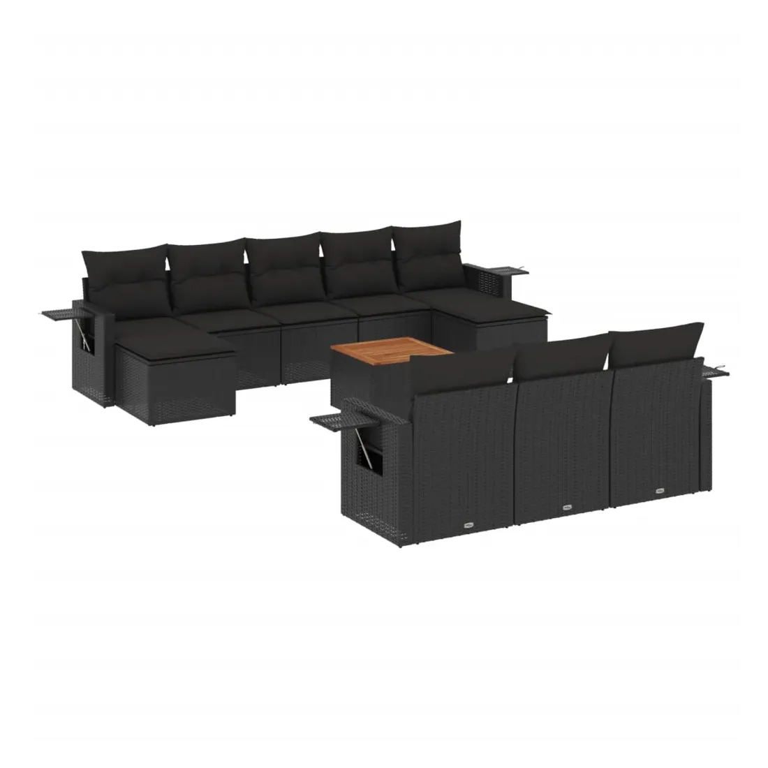 Cet ensemble de canapés de jardin est le complément parfait de votre arrière-cour, terrasse ou patio, offrant un espace confortable et accueillant pour discuter avec la famille et les amis ou simplement se détendre et profiter de l'extérieur. Matériau durable : la résine tressée, également connue sous le nom de poly rotin, est un matériau synthétique solide et nécessitant peu d'entretien qui ressemble au rotin naturel. Il est léger, facile à nettoyer et couramment utilisé pour les meubles d'extérieur en raison de sa durabilité et de ses propriétés de résistance aux intempéries.Table d'appoint pratique : ce mobilier d'extérieur comprend une table d'appoint pliable avec un ressort à gaz sur les accoudoirs, offrant un endroit pratique pour garder vos essentiels à portée de main.Dessus stable et facile à nettoyer : cette table de jardin a un dessus en bois d'acacia robuste, durable et facile à nettoyer avec un chiffon humide.Housse amovible et lavable : ces coussins de siège sont dotés de housses amovibles pour un lavage et un entretien faciles.Conception modulaire : cet ensemble de meubles d'extérieur a une conception modulaire, ce qui le rend complètement flexible et facile à déplacer, afin que vous puissiez créer un agencement de meubles d'extérieur personnalisé. Bon à savoir :Pour que vos meubles d'extérieur restent beaux, nous vous recommandons de les protéger avec une housse imperméable.