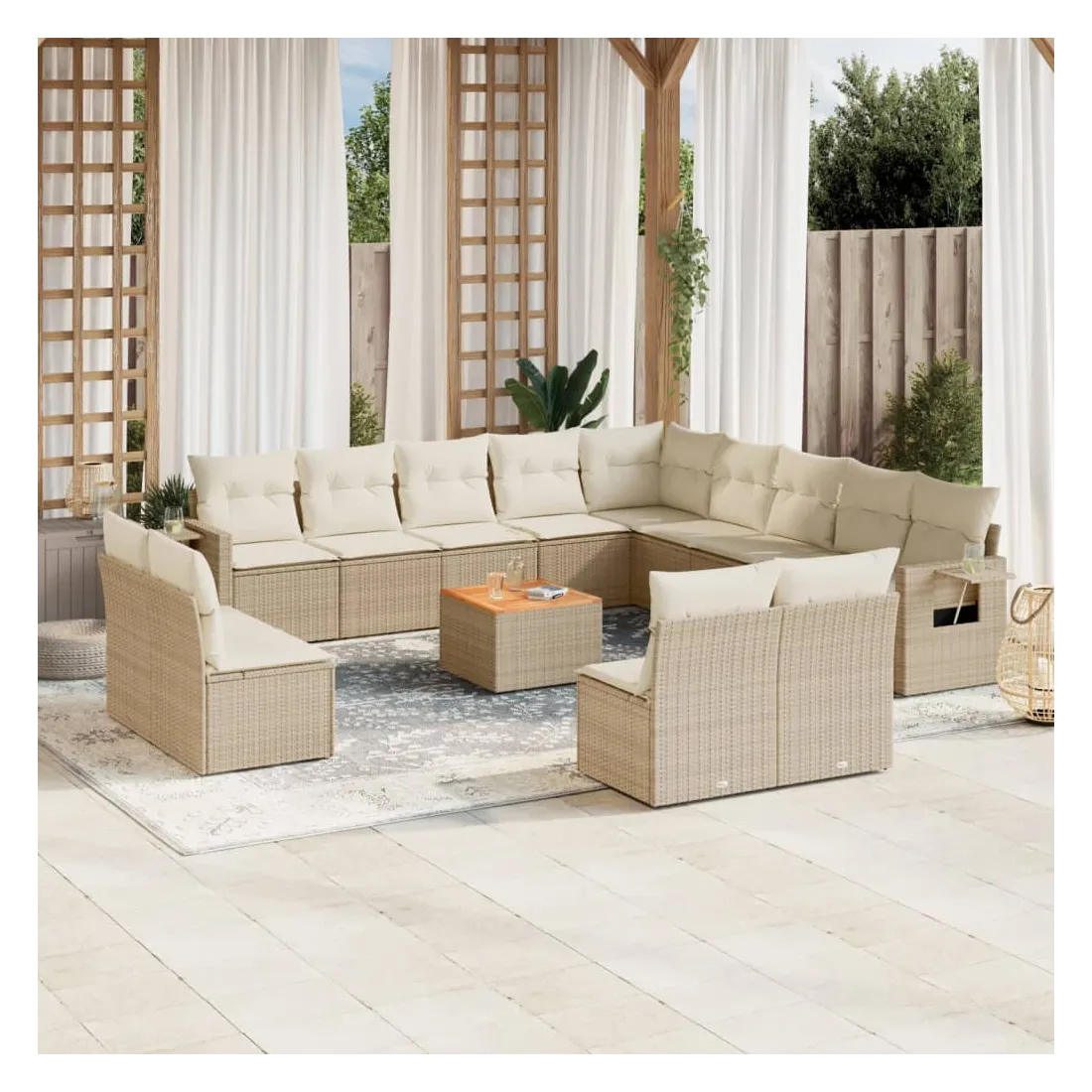 Cet ensemble de canapés de jardin est le complément parfait de votre arrière-cour, terrasse ou patio, offrant un espace confortable et accueillant pour discuter avec la famille et les amis ou simplement se détendre et profiter de l'extérieur. Matériau durable : la résine tressée, également connue sous le nom de poly rotin, est un matériau synthétique solide et nécessitant peu d'entretien qui ressemble au rotin naturel. Il est léger, facile à nettoyer et couramment utilisé pour les meubles d'extérieur en raison de sa durabilité et de ses propriétés de résistance aux intempéries.Table d'appoint pratique : ce mobilier d'extérieur comprend une table d'appoint pliable avec un ressort à gaz sur les accoudoirs, offrant un endroit pratique pour garder vos essentiels à portée de main.Dessus stable et facile à nettoyer : cette table de jardin a un dessus en bois d'acacia robuste, durable et facile à nettoyer avec un chiffon humide.Housse amovible et lavable : ces coussins de siège sont dotés de housses amovibles pour un lavage et un entretien faciles.Conception modulaire : cet ensemble de meubles d'extérieur a une conception modulaire, ce qui le rend complètement flexible et facile à déplacer, afin que vous puissiez créer un agencement de meubles d'extérieur personnalisé. Bon à savoir :Pour que vos meubles d'extérieur restent beaux, nous vous recommandons de les protéger avec une housse imperméable.