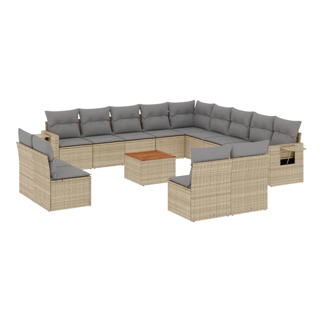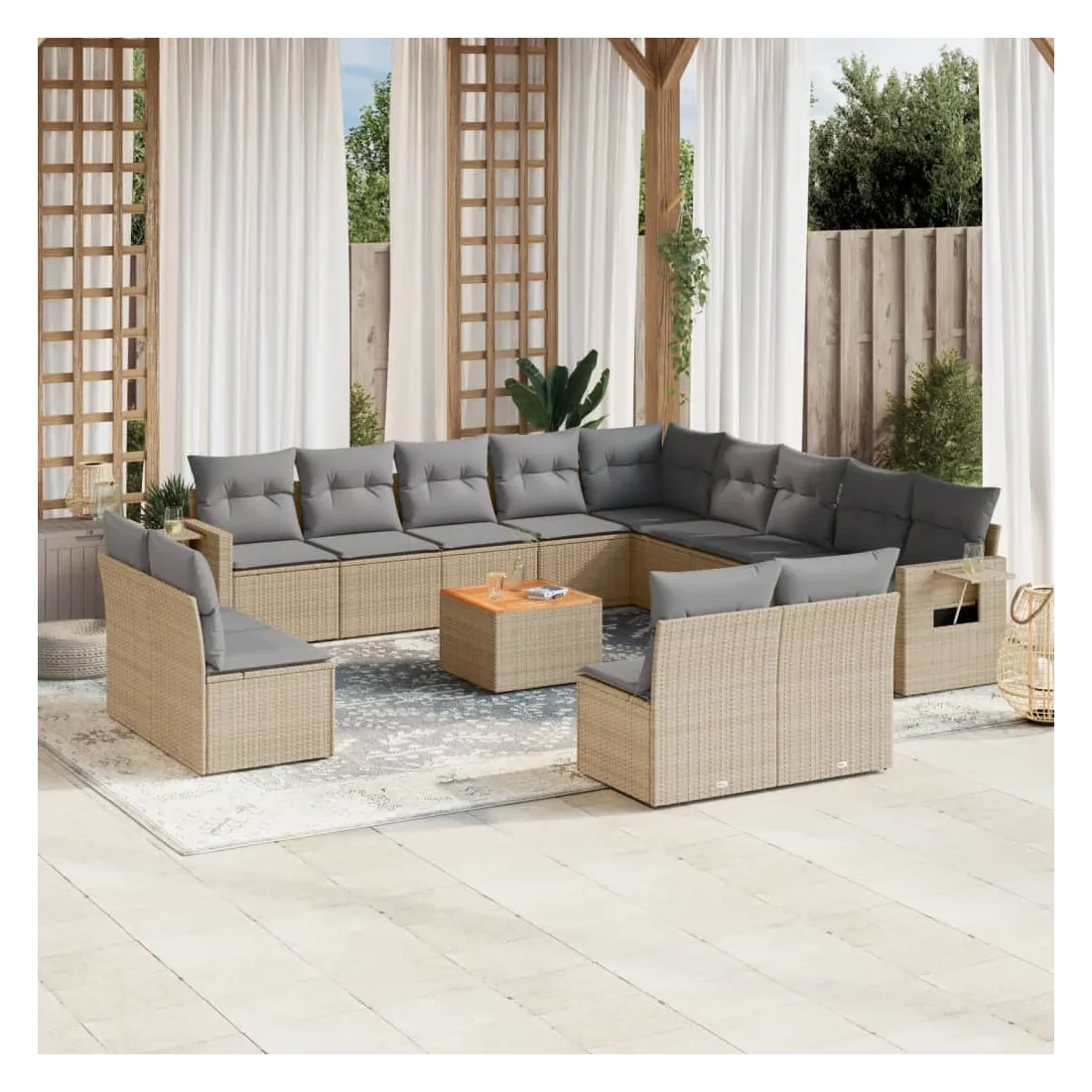 Cet ensemble de canapés de jardin est le complément parfait de votre arrière-cour, terrasse ou patio, offrant un espace confortable et accueillant pour discuter avec la famille et les amis ou simplement se détendre et profiter de l'extérieur. Matériau durable : la résine tressée, également connue sous le nom de poly rotin, est un matériau synthétique solide et nécessitant peu d'entretien qui ressemble au rotin naturel. Il est léger, facile à nettoyer et couramment utilisé pour les meubles d'extérieur en raison de sa durabilité et de ses propriétés de résistance aux intempéries.Table d'appoint pratique : ce mobilier d'extérieur comprend une table d'appoint pliable avec un ressort à gaz sur les accoudoirs, offrant un endroit pratique pour garder vos essentiels à portée de main.Dessus stable et facile à nettoyer : cette table de jardin a un dessus en bois d'acacia robuste, durable et facile à nettoyer avec un chiffon humide.Housse amovible et lavable : ces coussins de siège sont dotés de housses amovibles pour un lavage et un entretien faciles.Conception modulaire : cet ensemble de meubles d'extérieur a une conception modulaire, ce qui le rend complètement flexible et facile à déplacer, afin que vous puissiez créer un agencement de meubles d'extérieur personnalisé. Bon à savoir :Pour que vos meubles d'extérieur restent beaux, nous vous recommandons de les protéger avec une housse imperméable.