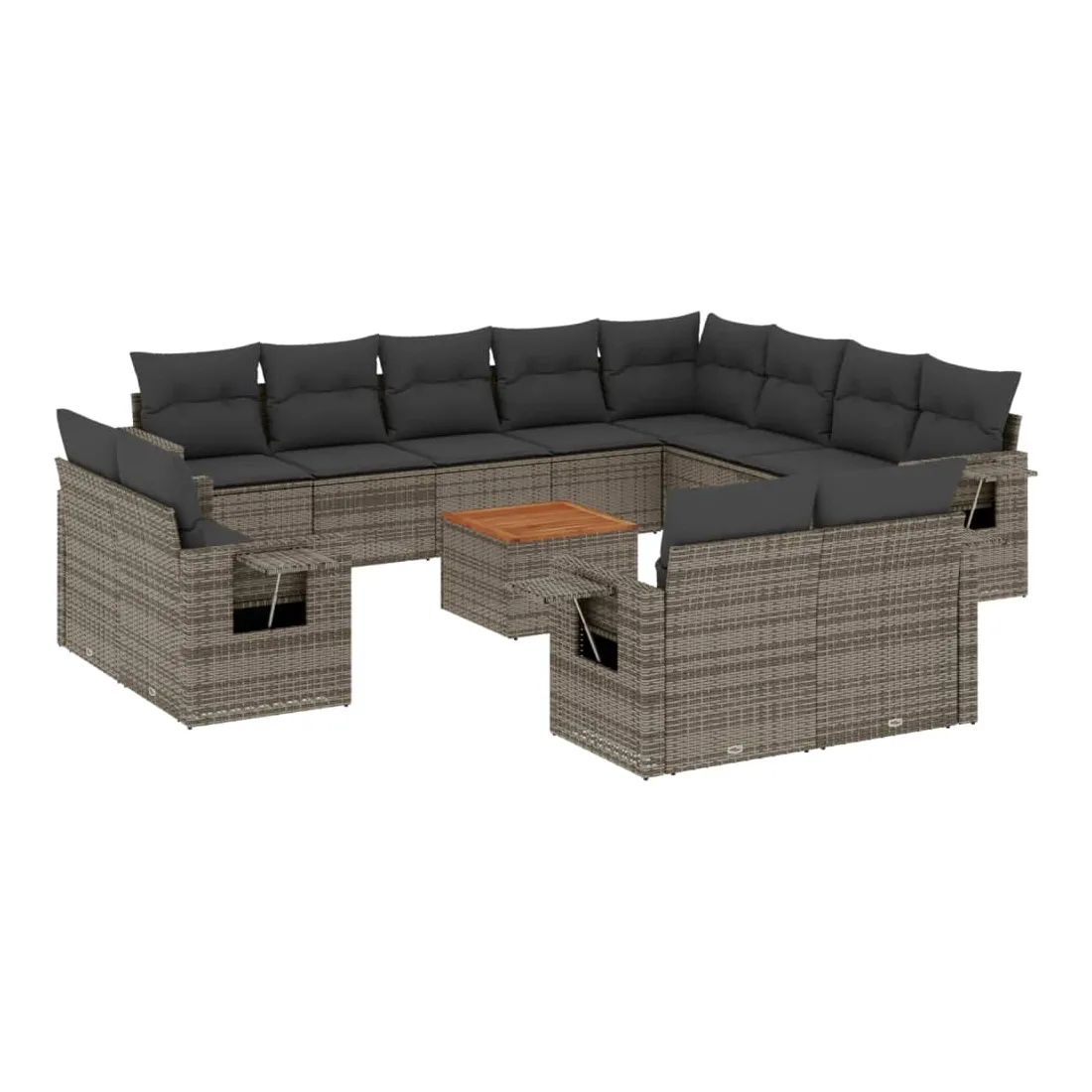 Cet ensemble de canapés de jardin est le complément parfait de votre arrière-cour, terrasse ou patio, offrant un espace confortable et accueillant pour discuter avec la famille et les amis ou simplement se détendre et profiter de l'extérieur. Matériau durable : la résine tressée, également connue sous le nom de poly rotin, est un matériau synthétique solide et nécessitant peu d'entretien qui ressemble au rotin naturel. Il est léger, facile à nettoyer et couramment utilisé pour les meubles d'extérieur en raison de sa durabilité et de ses propriétés de résistance aux intempéries.Table d'appoint pratique : ce mobilier d'extérieur comprend une table d'appoint pliable avec un ressort à gaz sur les accoudoirs, offrant un endroit pratique pour garder vos essentiels à portée de main.Dessus stable et facile à nettoyer : cette table de jardin a un dessus en bois d'acacia robuste, durable et facile à nettoyer avec un chiffon humide.Housse amovible et lavable : ces coussins de siège sont dotés de housses amovibles pour un lavage et un entretien faciles.Conception modulaire : cet ensemble de meubles d'extérieur a une conception modulaire, ce qui le rend complètement flexible et facile à déplacer, afin que vous puissiez créer un agencement de meubles d'extérieur personnalisé. Bon à savoir :Pour que vos meubles d'extérieur restent beaux, nous vous recommandons de les protéger avec une housse imperméable.