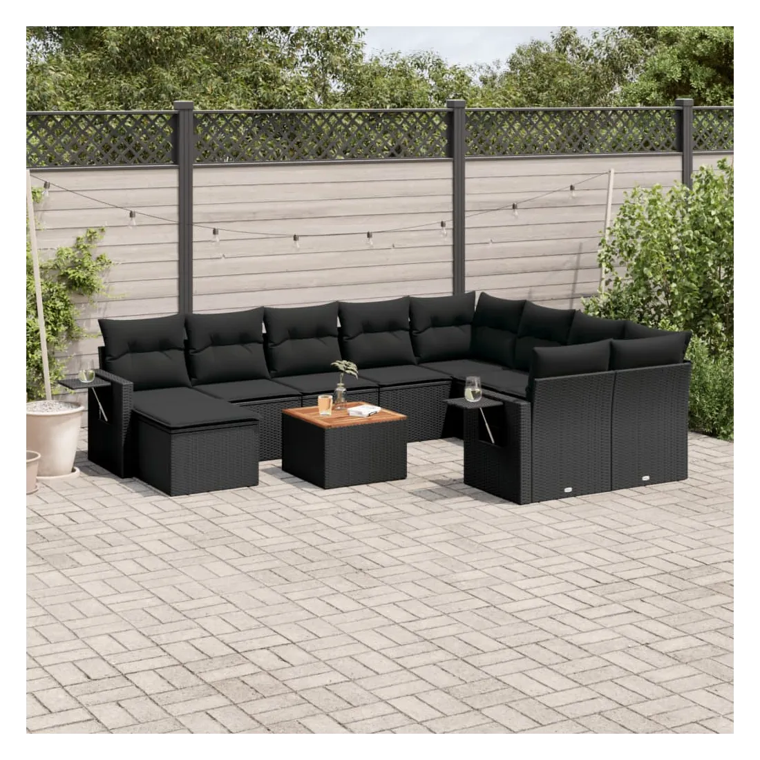 Cet ensemble de canapés de jardin est le complément parfait de votre arrière-cour, terrasse ou patio, offrant un espace confortable et accueillant pour discuter avec la famille et les amis ou simplement se détendre et profiter de l'extérieur. Matériau durable : la résine tressée, également connue sous le nom de poly rotin, est un matériau synthétique solide et nécessitant peu d'entretien qui ressemble au rotin naturel. Il est léger, facile à nettoyer et couramment utilisé pour les meubles d'extérieur en raison de sa durabilité et de ses propriétés de résistance aux intempéries.Table d'appoint pratique : ce mobilier d'extérieur comprend une table d'appoint pliable avec un ressort à gaz sur les accoudoirs, offrant un endroit pratique pour garder vos essentiels à portée de main.Dessus stable et facile à nettoyer : cette table de jardin a un dessus en bois d'acacia robuste, durable et facile à nettoyer avec un chiffon humide.Housse amovible et lavable : ces coussins de siège sont dotés de housses amovibles pour un lavage et un entretien faciles.Conception modulaire : cet ensemble de meubles d'extérieur a une conception modulaire, ce qui le rend complètement flexible et facile à déplacer, afin que vous puissiez créer un agencement de meubles d'extérieur personnalisé. Bon à savoir :Pour que vos meubles d'extérieur restent beaux, nous vous recommandons de les protéger avec une housse imperméable.