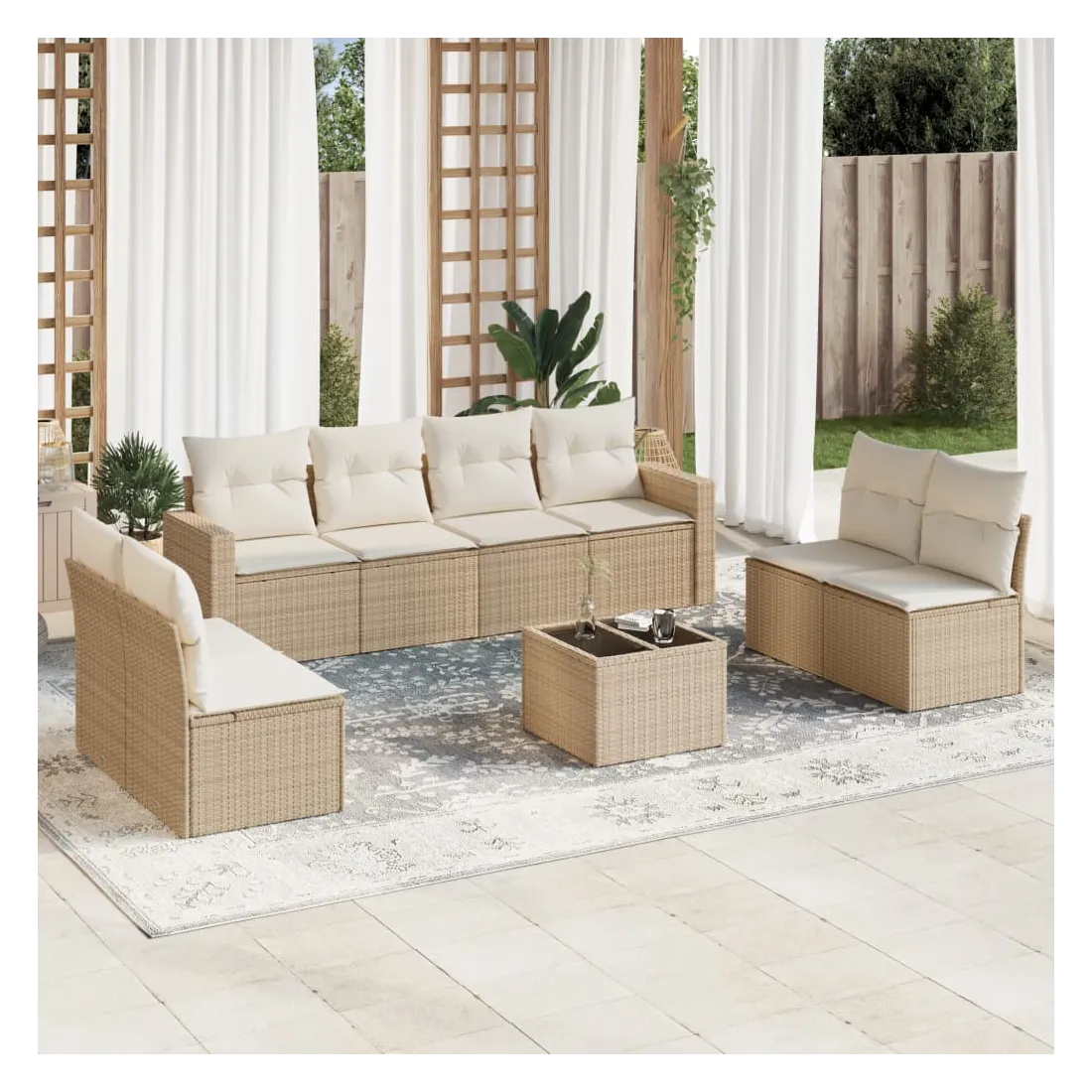 Cet ensemble de canapés de jardin est le complément parfait de votre arrière-cour, terrasse ou patio, offrant un espace confortable et accueillant pour discuter avec la famille et les amis ou simplement se détendre et profiter de l'extérieur. Matériau durable : la résine tressée, également connue sous le nom de poly rotin, est un matériau synthétique solide et nécessitant peu d'entretien qui ressemble au rotin naturel. Il est léger, facile à nettoyer et couramment utilisé pour les meubles d'extérieur en raison de sa durabilité et de ses propriétés de résistance aux intempéries.Fonction de rangement avec sac résistant à l'eau : chaque siège de jardin dispose d'un espace de rangement sous l'assise, complété par un sac résistant à l'eau pour ranger les coussins, les jouets et d'autres objets. Les sacs intérieurs sont dotés d'un couvercle et peuvent être solidement fixés aux sièges à l'aide de bandes auto-agrippantes pour plus de stabilité.Dessus en verre : le dessus de la table d'extérieur est fabriqué en verre trempé solide et durable, ce qui le rend facile à nettoyer avec un chiffon humide et ajoute une touche d'élégance à votre espace extérieur.Housse amovible et lavable : ces coussins de siège sont dotés de housses amovibles pour un lavage et un entretien faciles.Conception modulaire : cet ensemble de meubles d'extérieur a une conception modulaire, ce qui le rend complètement flexible et facile à déplacer, afin que vous puissiez créer un agencement de meubles d'extérieur personnalisé. Bon à savoir :Pour que vos meubles d'extérieur restent beaux, nous vous recommandons de les protéger avec une housse imperméable.